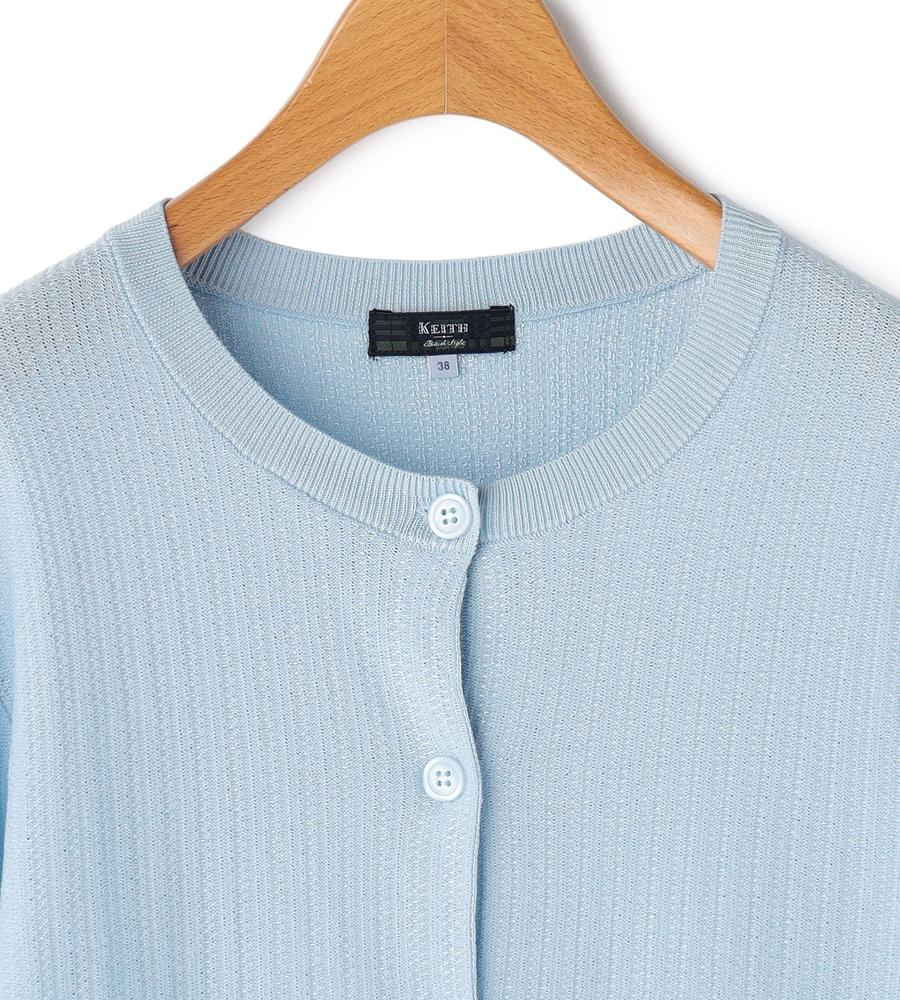 立体感のある模様のスレッド編みがエレガントなデザインの7分袖カーディガン。軽やかなムードの生地感で、春夏シーズンの重ね着コーディネートにぴったり。シンプルなデザインで様々なボトムと好相性。いつもの着こなしにプラスして、オンオフを問わないお出かけスタイルが完成するアイテムです。