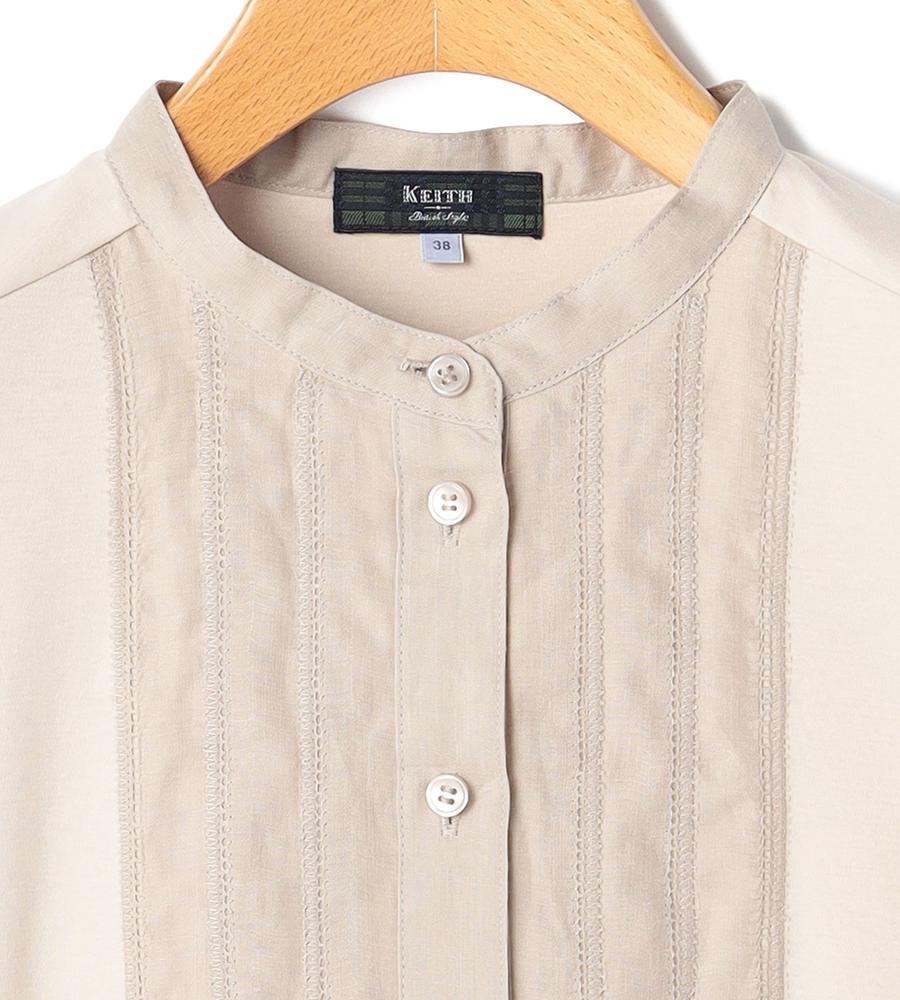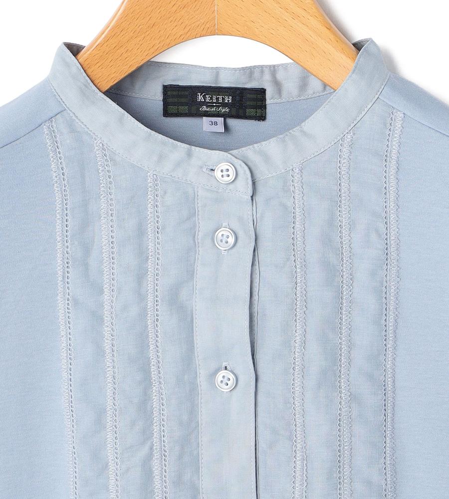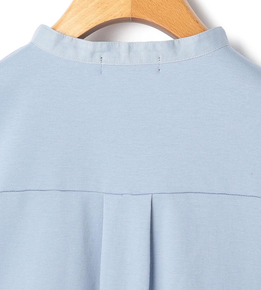 ブラウスのようなデザインがエレガントなムードの7分袖丈カットソー。スムースジャージー生地で仕立てた、着心地の良い一枚。レースパネルのようなフロントのデザインがおしゃれなポイント。ノーカラーのすっきりととした襟元も特長。春夏シーズンらしいさわやかな着こなしが実現するアイテムです。