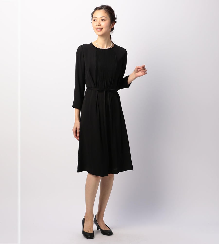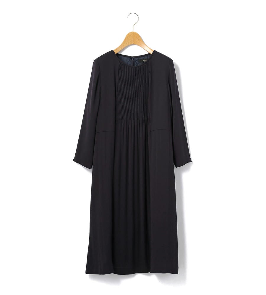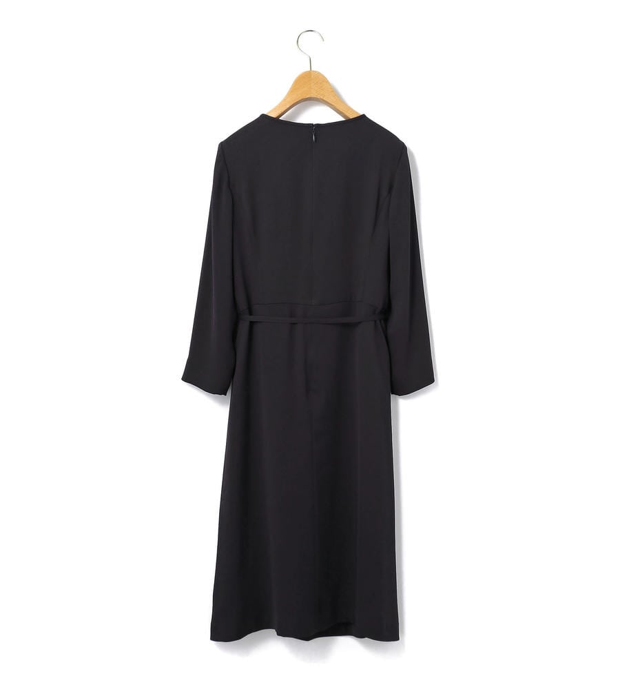 控えめな光沢が美しい、しなやかなサテンジョーゼットのドレス。フロントの細やかなプリーツが洗練されたムードを演出します。スリムなウエストベルトを添えると女性らしい雰囲気に、外せば今季らしいリラックス感のあるバランスに。フォーマルなシーンにもおすすめの一着。
