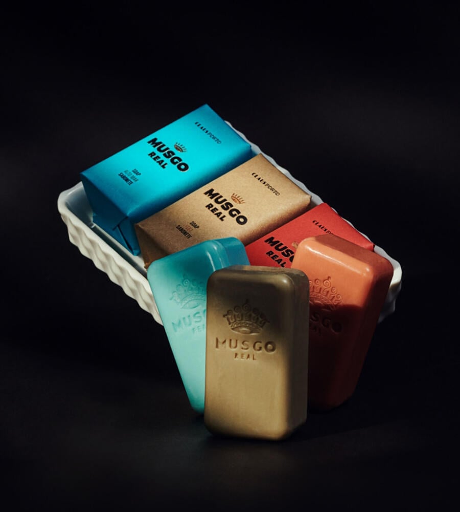 アクアティックなアルト マール、魅惑的なプーロ サング、そしてタイムレスな1887。植物オイルを豊富に配合したこれらの洗練されたソープは、1936年に誕生したムスゴ レアル コレクションのミニマルなエレガンスとカラーコードを受け継いでいます。