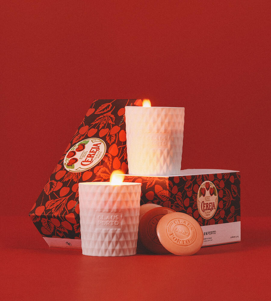 ブランド創立初期の19世紀後半に制作された、3つの可愛らしいチェリーが描かれた美しいアールヌーヴォーのパッケージに、CEREJAの香りの2つのミニキャンドルが包まれています。