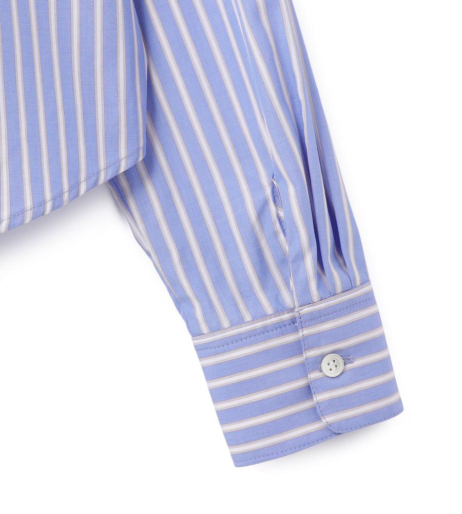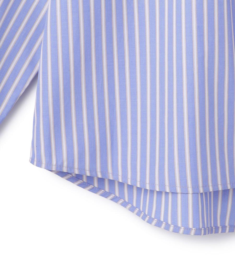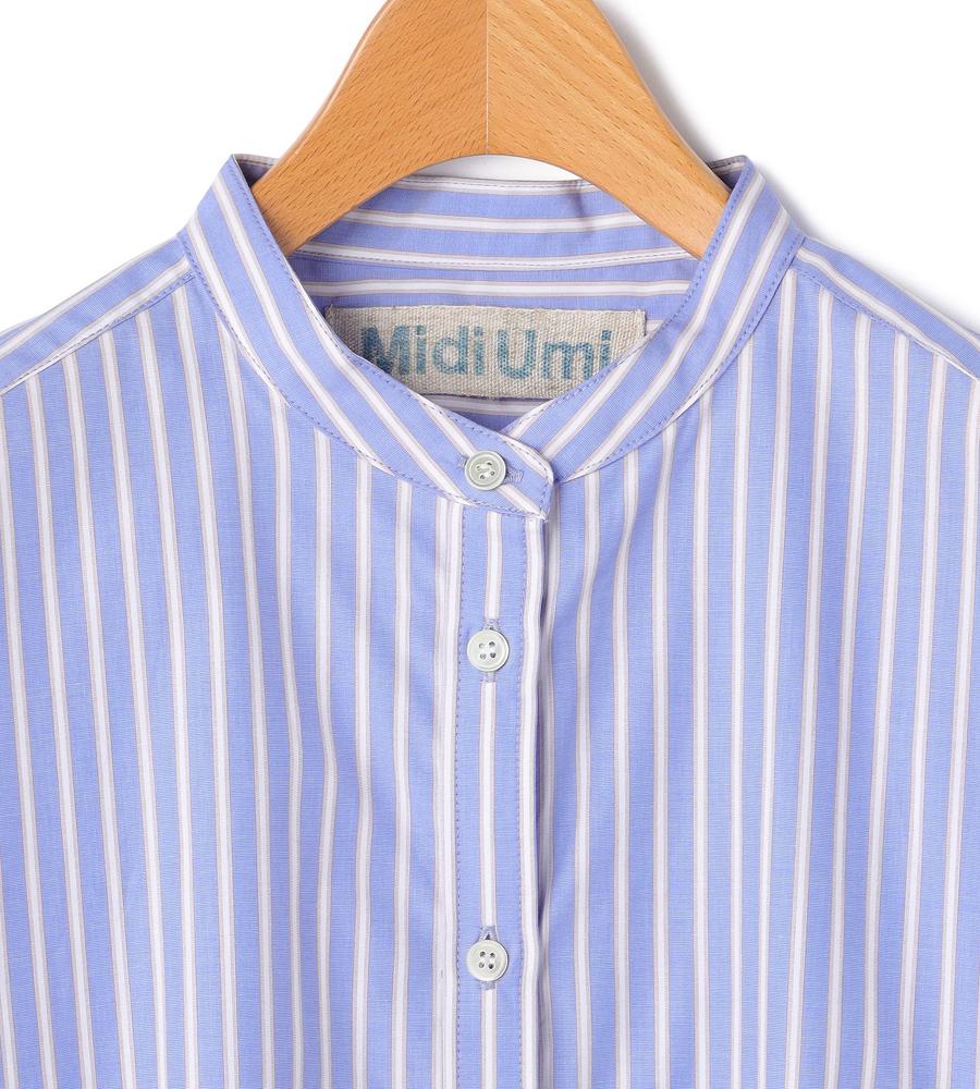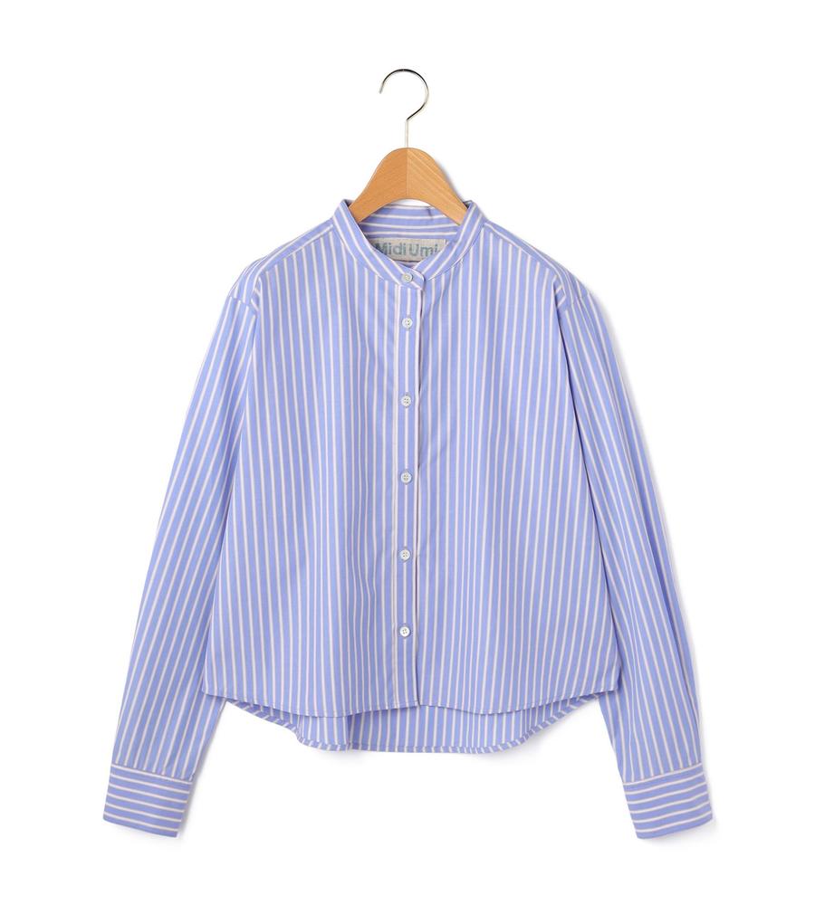 爽やかな着こなしをかなえてくれるストライプ柄のシャツです。顔まわりをすっきりと見せてくれるバンドカラー、体型をひろわないほど良いハリ感のある素材で仕上げました。1枚着はもちろんインナーとしても存在感があっておすすめ、あわせるアイテム次第でカジュアルにもきれいめにも着られるアイテムです。