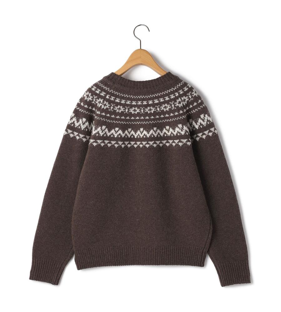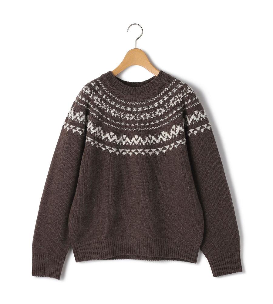 幾何学模様が段になったノルディック柄が秋冬シーズンらしいデザインの長袖ニットプルオーバー。毛混合のあたたかな肌触りの生地も特徴。裾、袖口、首周りにはリブのアクセントでさりげなくメリハリあるシルエット。シンプルなデザインでボトムを選ばず着こなせて、毎日のスタイリングで活躍するアイテムです。