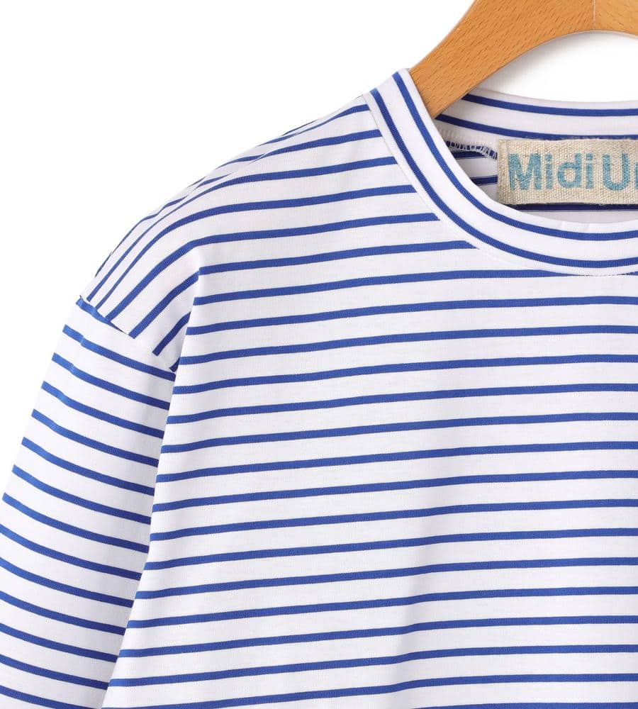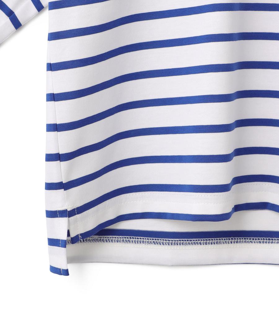毎日のカジュアルコーデにぴったりなボーダー柄のカットソーです。そのまま着流しても決まる前後差を持たせた裾デザインがポイント、ドロップショルダーがこなれ感のある着こなしをかなえてくれます。1枚で着るのはもちろん、ジャケットやカーディガンのインナーとしても存在感のあるおすすめのアイテムです。