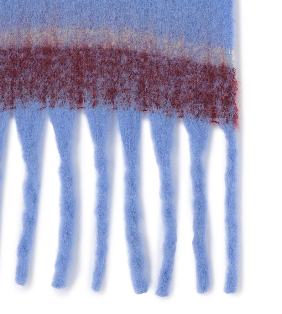 ボリュームあるふわふわの素材感でトレンド感抜群のマフラー。ニュアンスのあるボーダー柄のデザインが着こなしにアクセントを与えてくれるおしゃれなデザイン。裾のビッグフリンジもおしゃれなデザインポイント。あたたかなムードで秋冬シーズンらしいお出かけスタイリングにぴったりなアイテムです。