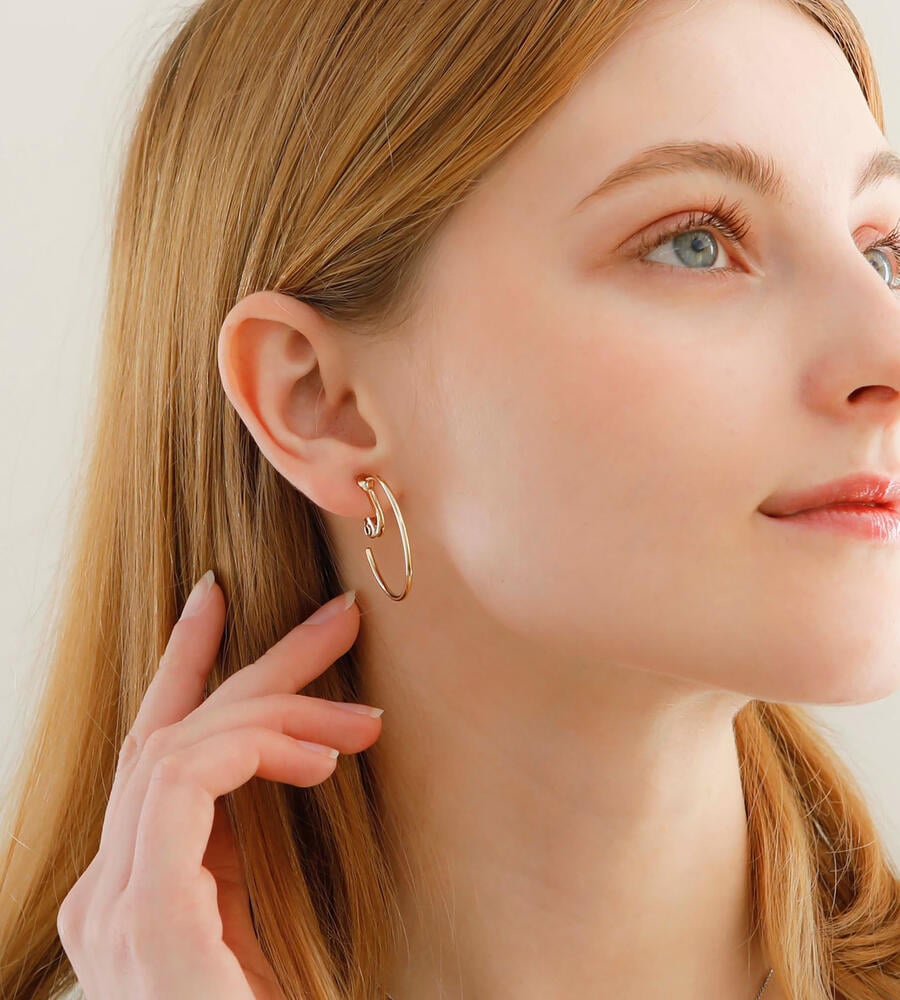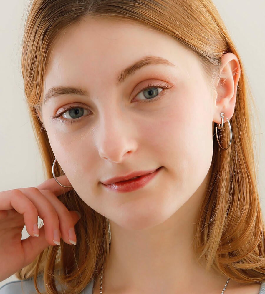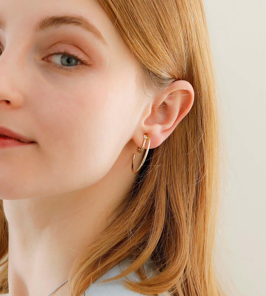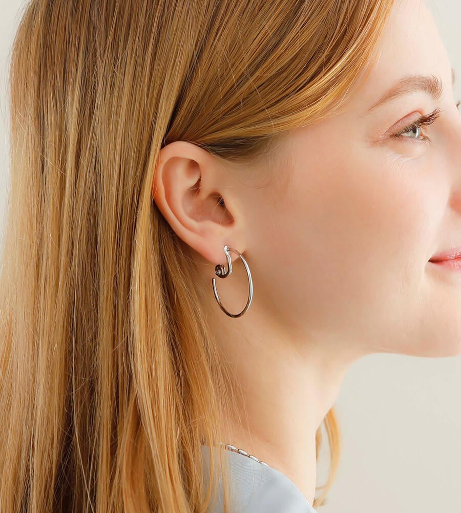 定番のフープデザインでどんなスタイルにも合わせやすいエアフィットイヤリングです。シンプルながら、存在感のある大きめなサイズがポイント。顔まわりに華やぎを添えつつ、華奢なシルエットが上品な印象を演出します。普段使いはもちろん、通勤やお出かけ、パーティなど様々なシーンに最適です。