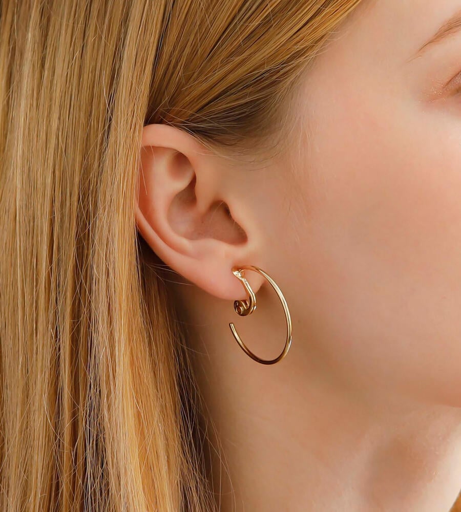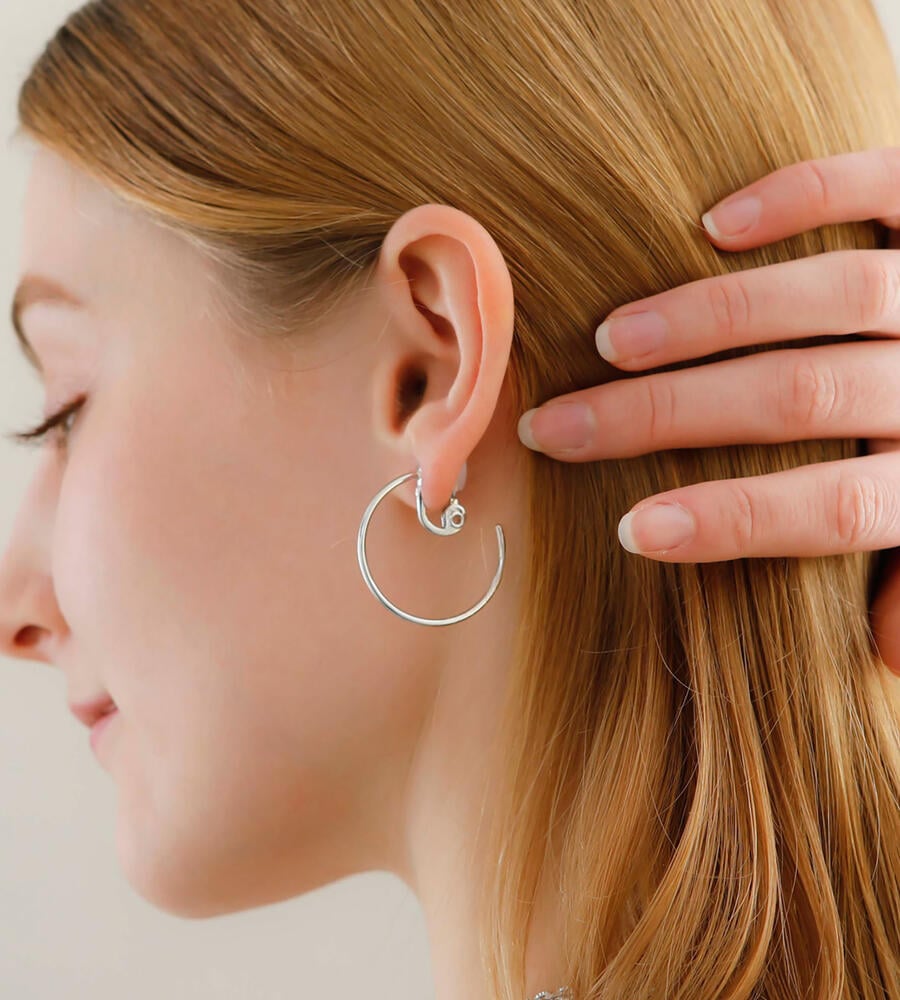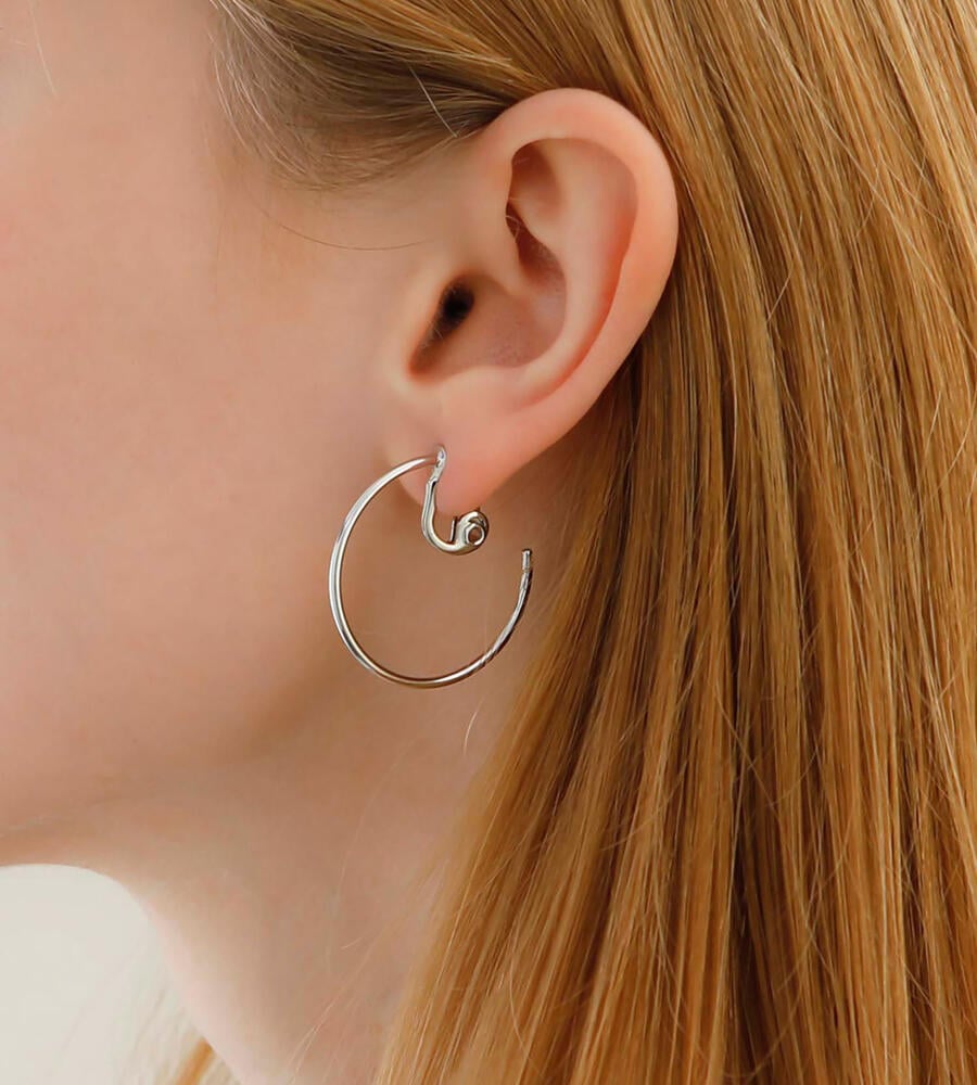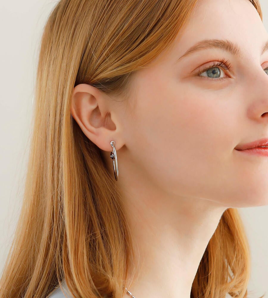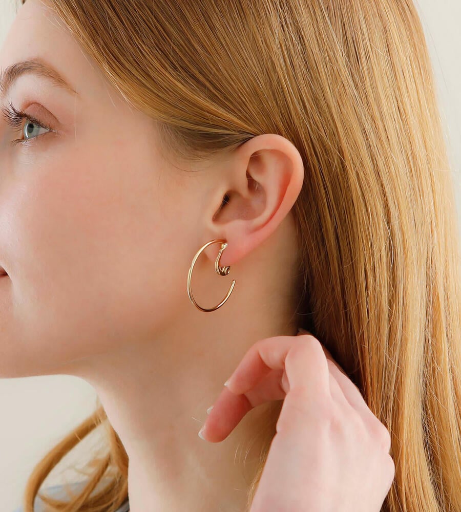 定番のフープデザインでどんなスタイルにも合わせやすいエアフィットイヤリングです。シンプルながら、存在感のある大きめなサイズがポイント。顔まわりに華やぎを添えつつ、華奢なシルエットが上品な印象を演出します。普段使いはもちろん、通勤やお出かけ、パーティなど様々なシーンに最適です。