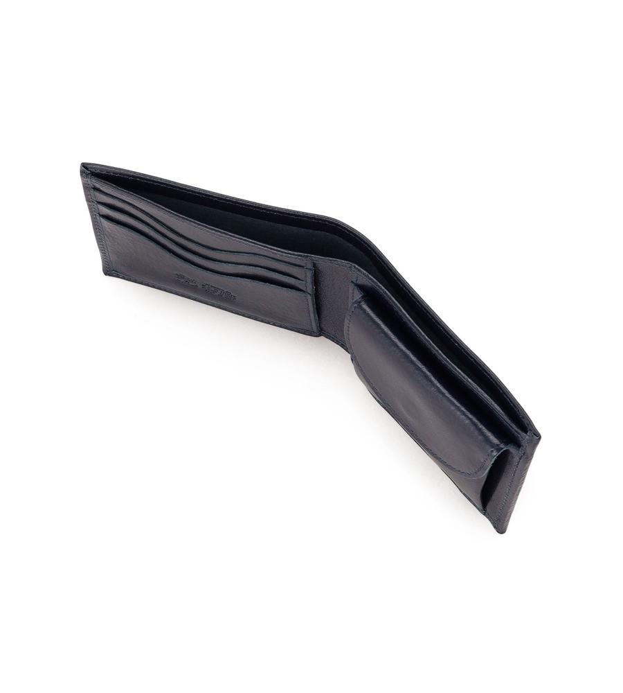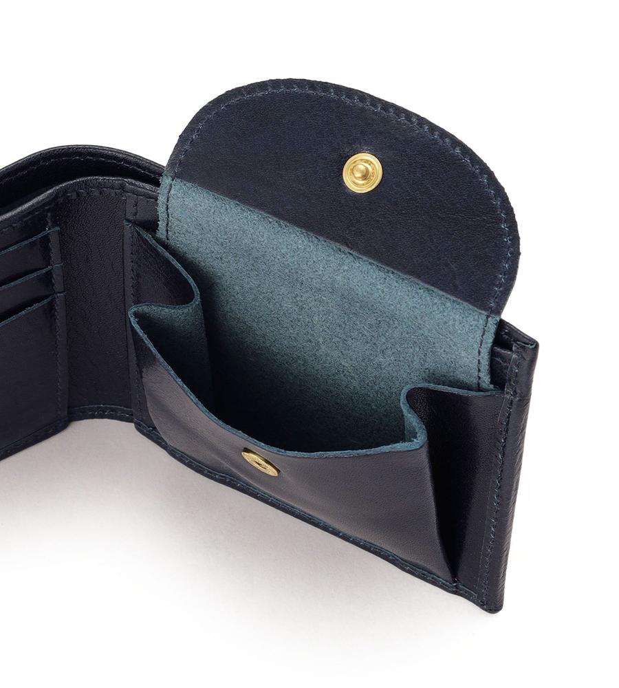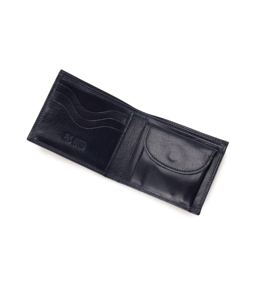 手にしっくりなじむレザーを用いた2つ折りウォレット。端に添えたバッファローロゴの刻印が、高級感を高めるアクセントになっています。紙幣やカード、コインがすっきりとまとめられるスマートな仕様です。