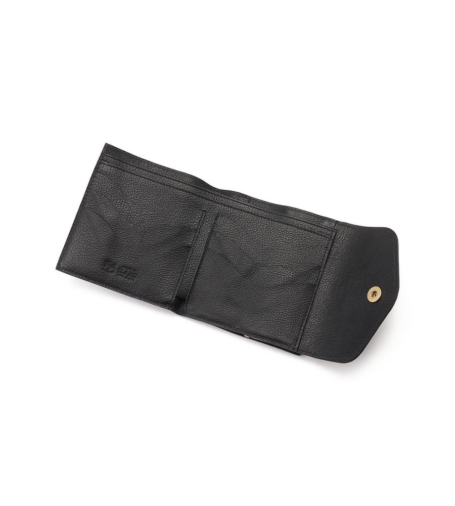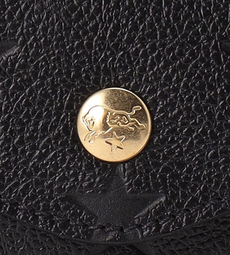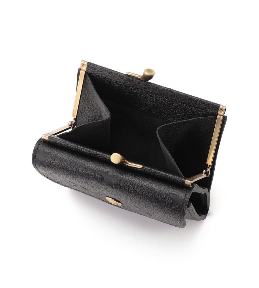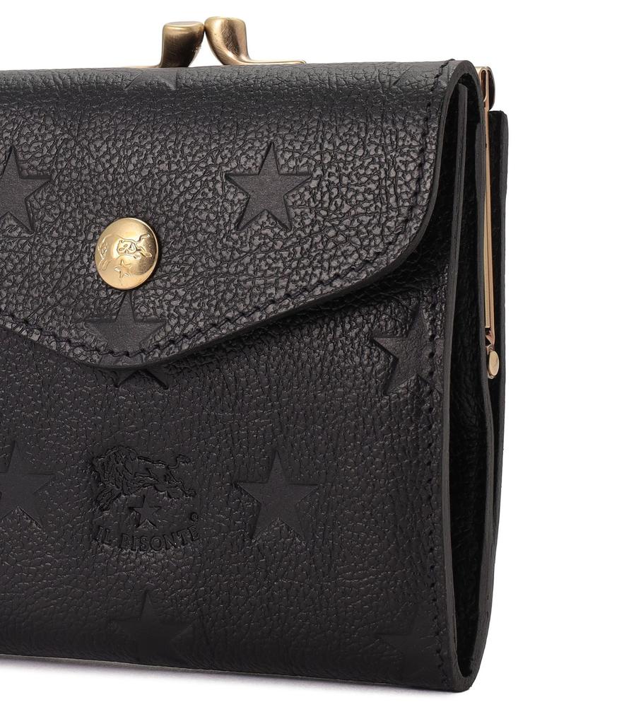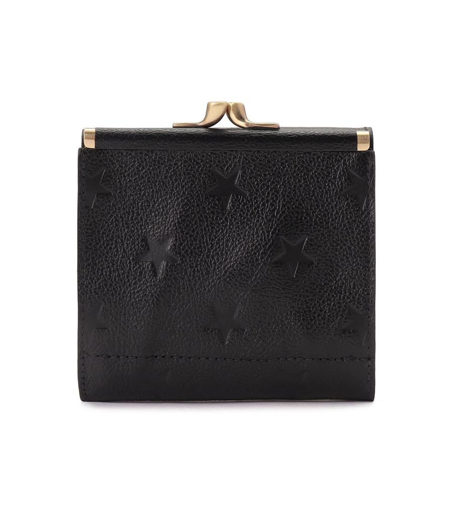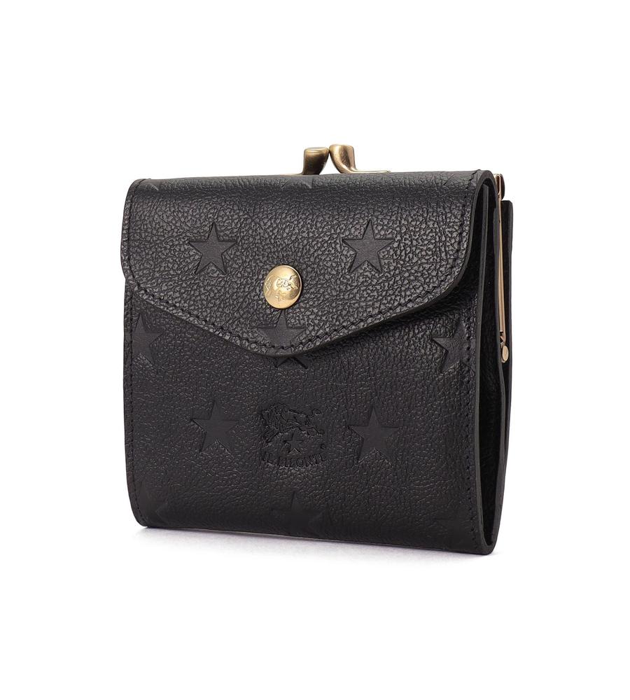 クラシックカラーのレザーにスターモチーフを型押しした二つ折りウォレット。内側はカードと紙幣の収納スペースが充実し、外側はがま口の小銭入れを備えています。小ぶりながら、収納力と使い勝手に優れた一品です。