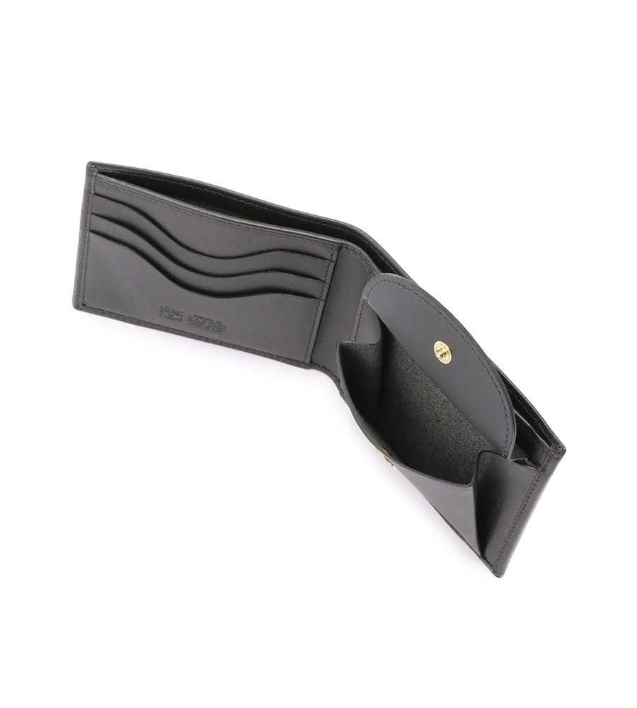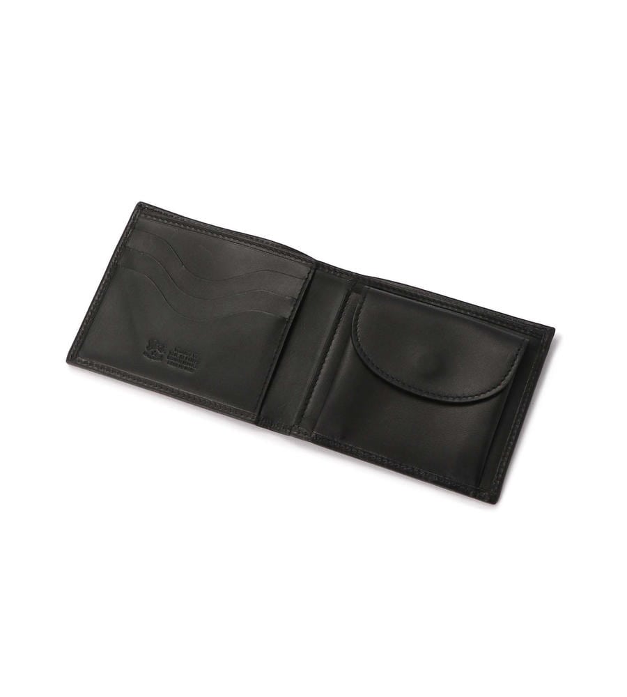 コンパクトサイズでポケットにもスッキリ収まる2つ折りウォレットです。しなやかなレザーを用いた上質なアイテム。ムダを削ぎ落としたミニマルなデザインに、さりげなく施したバイソンロゴの刻印がアクセントを効かせています。