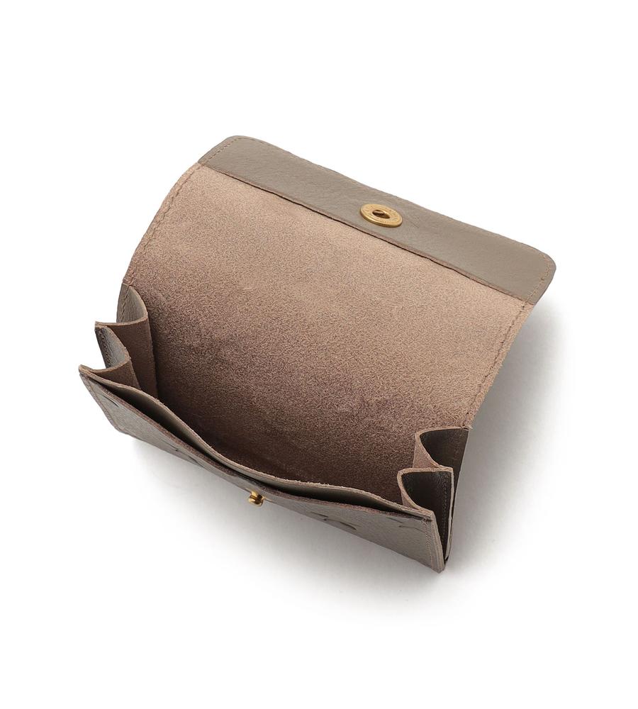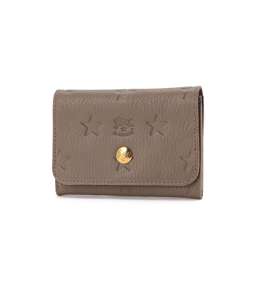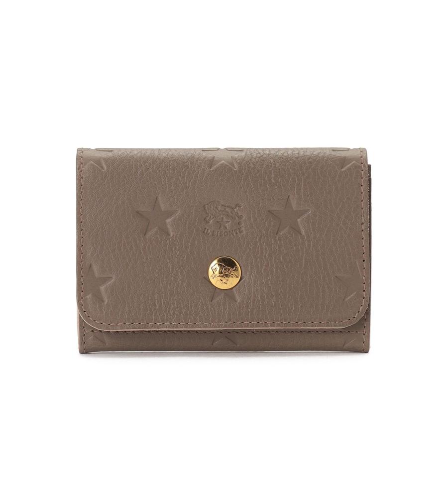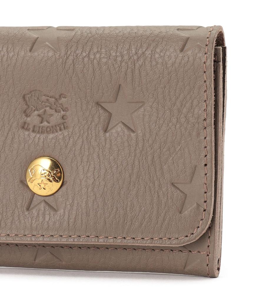 ブランドの特徴でもある上質なレザーで仕立てたカードケース。ブランドロゴと星柄の型押しがスタイリッシュなデザイン。ゴールドのボタンがエレガントなポイント。カードの整理に便利な仕切りと立体的なフォルムも魅力。デイリーに活躍するアイテムです。
