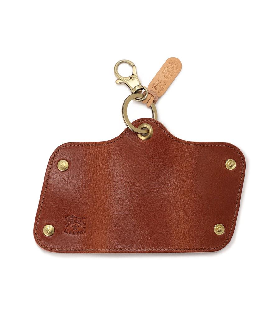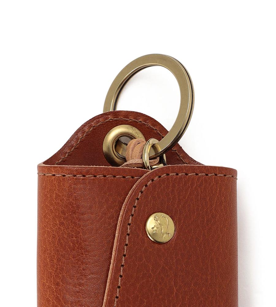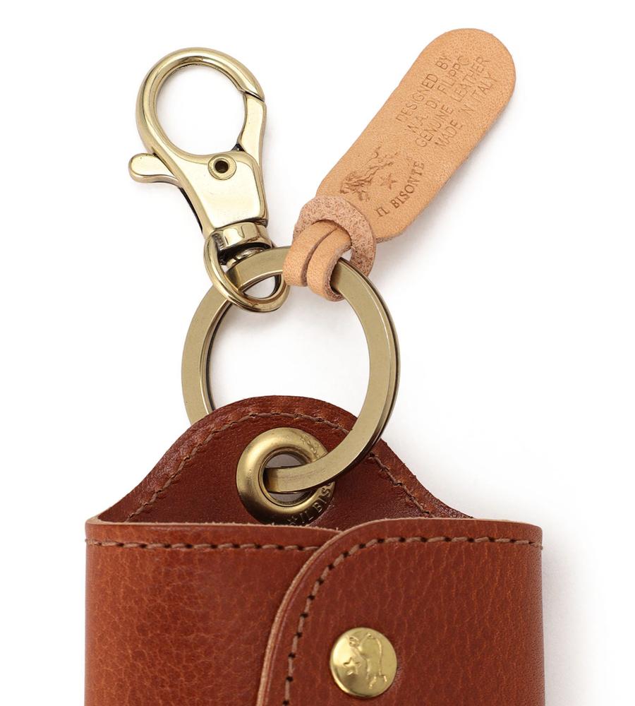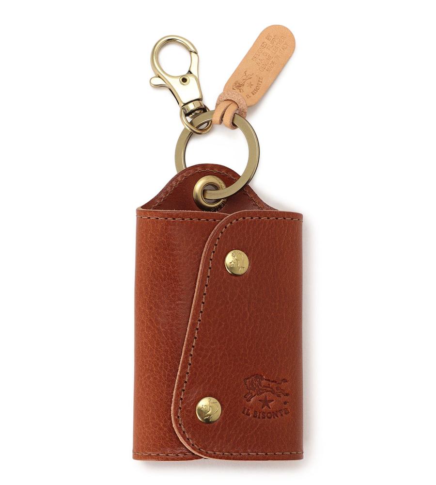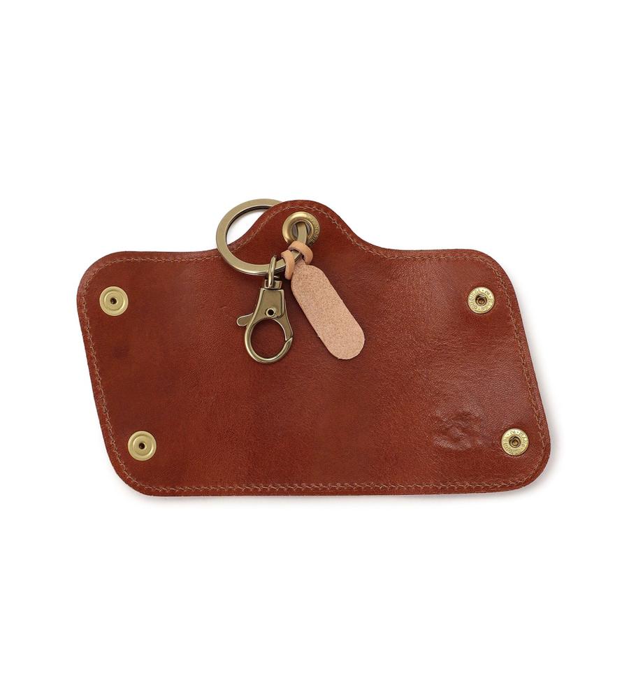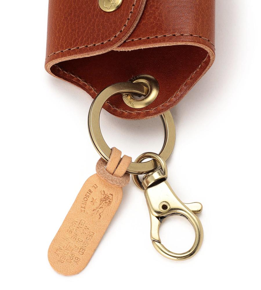 斜めに配したメタリックのスナップが目を引くキーケース。マットな光沢を持つレザーに、バッファローの刻印を入れ、格調高く仕上げています。鍵を包み込むような仕様で、手に取りやすいサイズ感。ギフトとしても喜ばれるアイテムです。