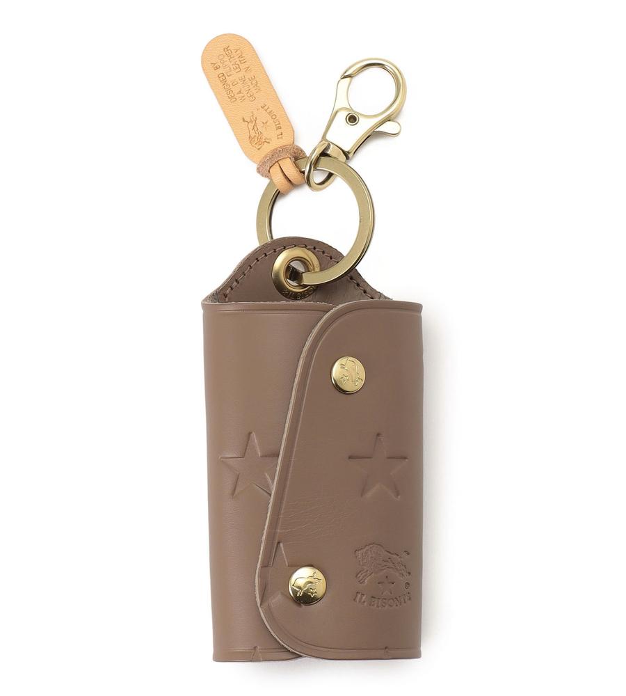 上質なレザーにブランドを象徴するスターモチーフを型押ししたキーケース。大きめのリングにフックをあしらった使い勝手のよいデザイン。立体的なフォルムにより車のリモコンキーも収まります。ギフトにもおすすめの一品です。