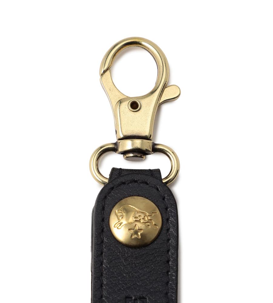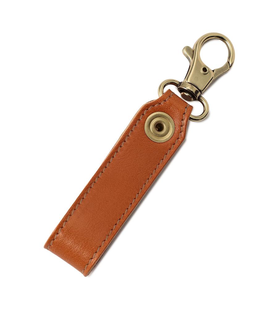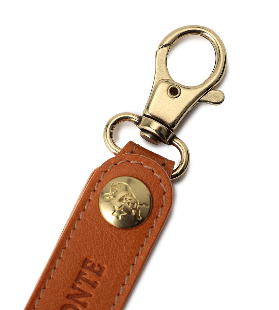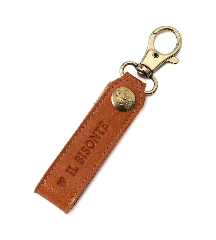 バッグのハンドルやベルトループなどにも取り付けることができるレザー素材のキーリング。シンプルながらもレザーの格調高さで、品よく仕上げています。ハート入りのロゴの型押しが、個性的なアクセント。大切な方へのギフトにもおすすめです。