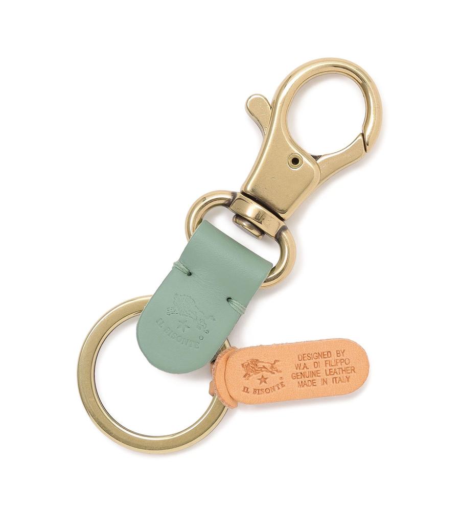 きれいな色使いのレザーと、きらりと輝く金具のマッチングがエレガントなキーリング。毎日使う実用品こそ、こだわりを持って選びたい方におすすめです。