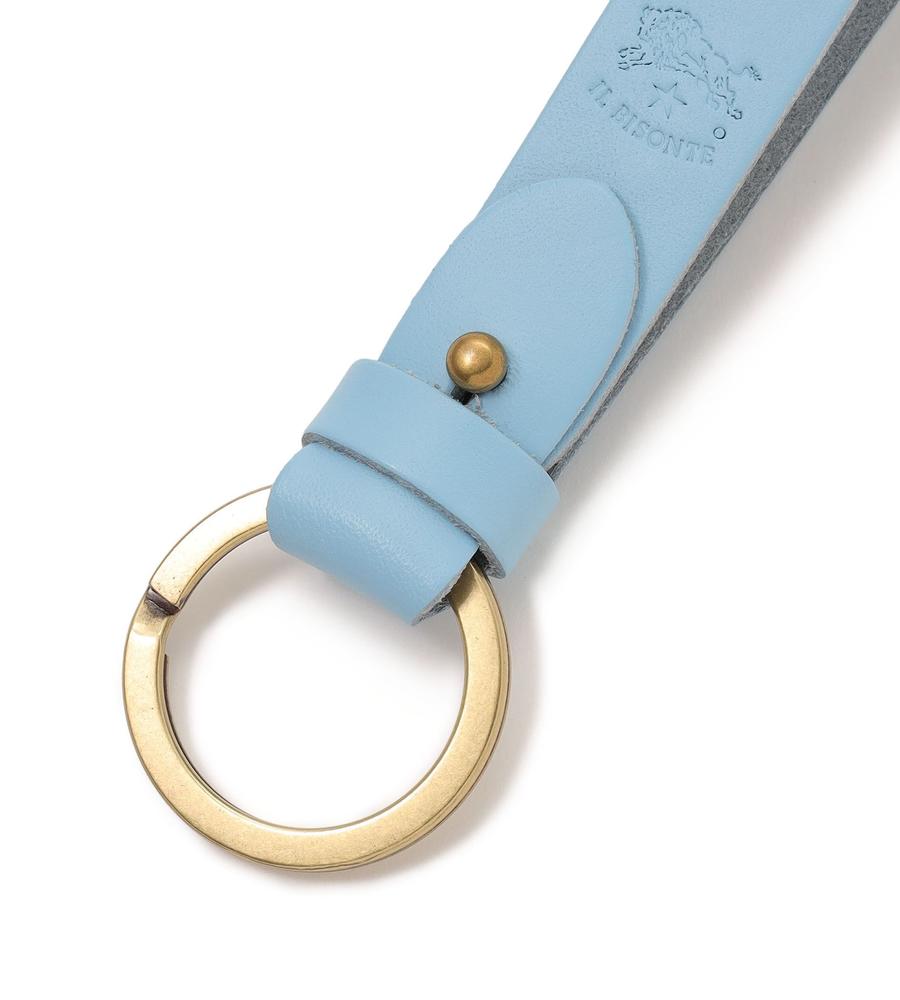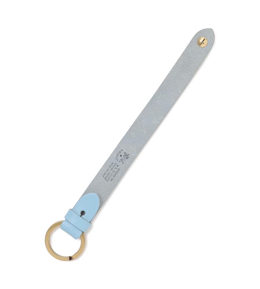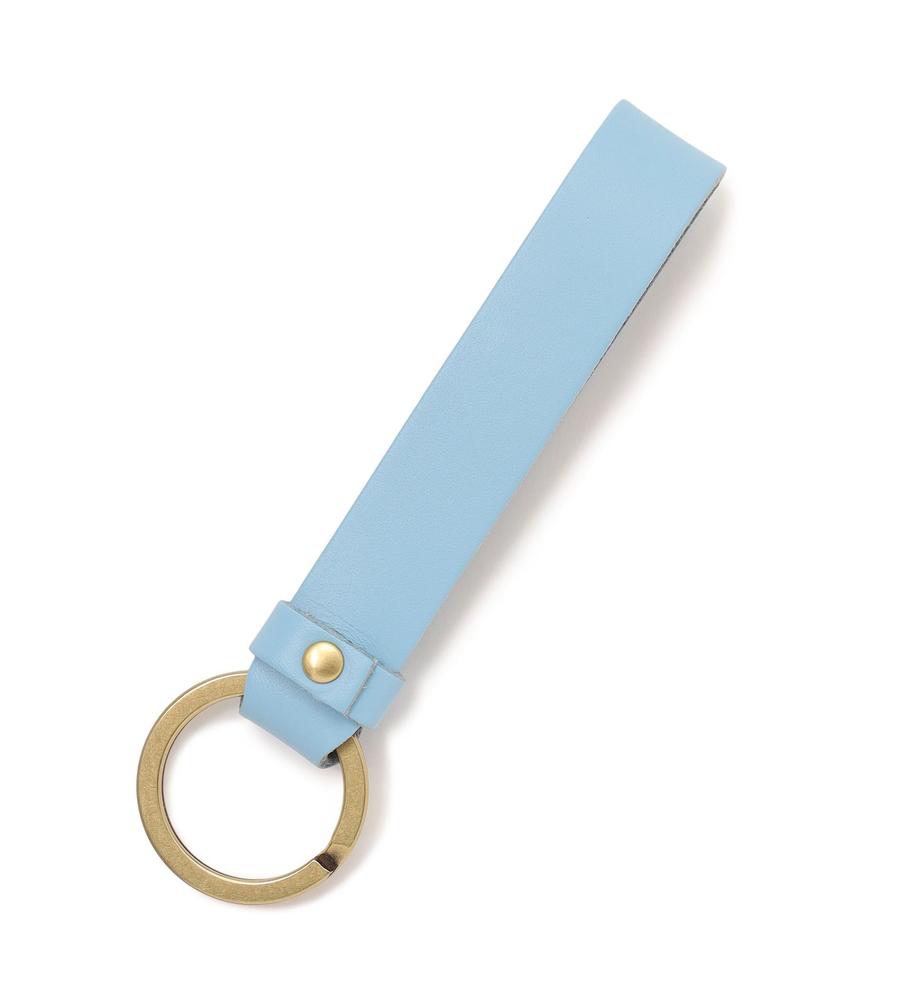 きれいな色使いのレザーと、きらりと輝く金具のマッチングがエレガントなキーリング。シンプルなフォルムで、ポケットの中でもかさばりにくいのもポイントです。