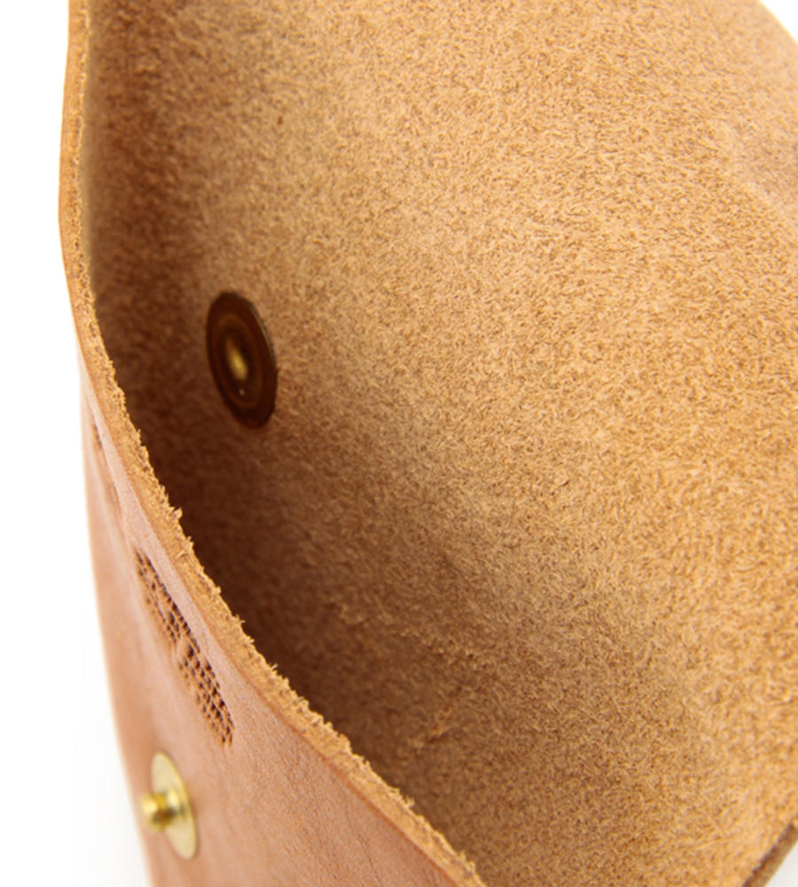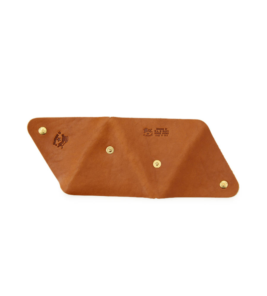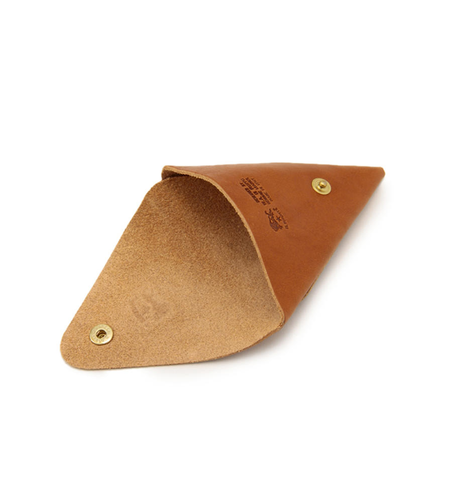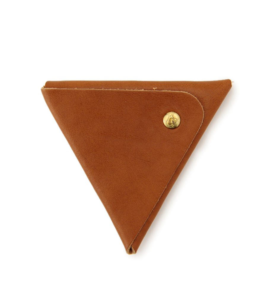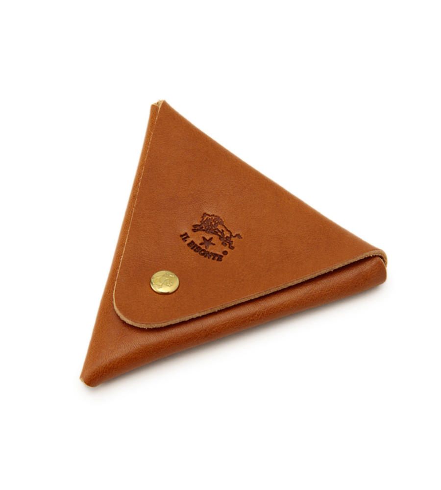 三角形のフォルムが特徴のコインパース。1枚のレザーを折り畳んで作られており、イル ビゾンテらしい、遊び心があるアイテムです。