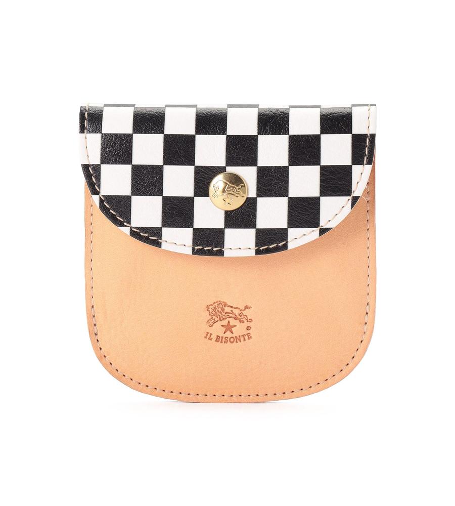 ブランドの魅力でもある上質なレザーで仕立てたコインパース。チェッカーボード柄がおしゃれなデザインアクセント。フロントにはブランドロゴマークの型押しがさりげなくスタイリッシュなデザイン。立体的なフォルムで、使い勝手も抜群です。