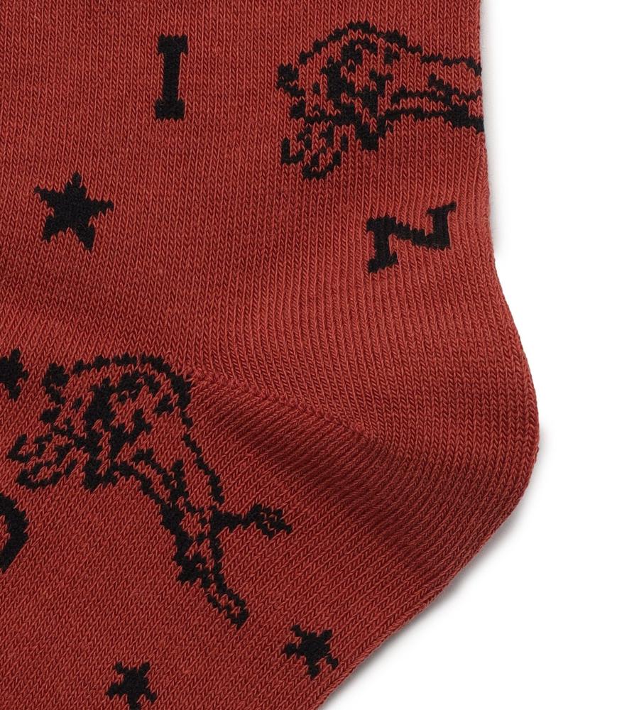 ブランドアイコンの総柄がクール&キュートなソックス。通年で着用しやすいクルー丈もポイントです。