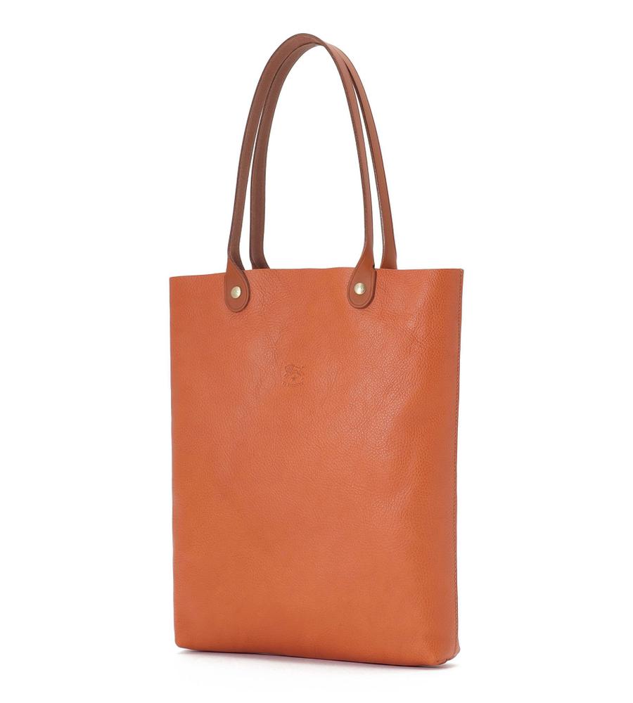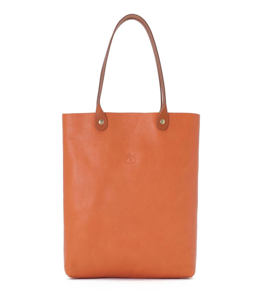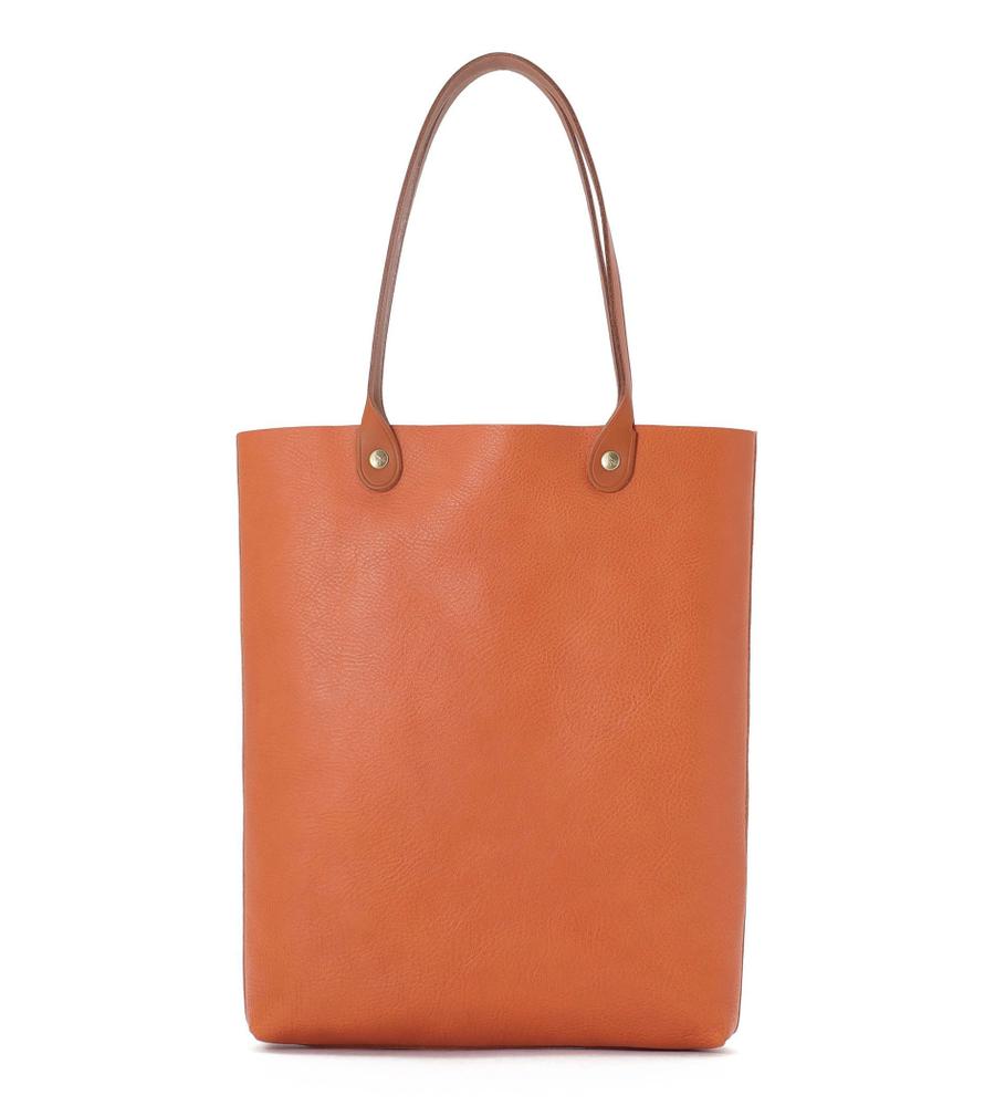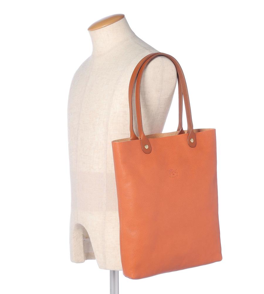 革の風合いを活かした裏地なしの縦型トートバッグ。無駄な装飾もなく、洗練された一品です。型押しのバッファローロゴがさりげないアクセント。A4サイズを縦に収納でき、長めのハンドルで肩がけも可能。オンオフ兼用でおすすめです。