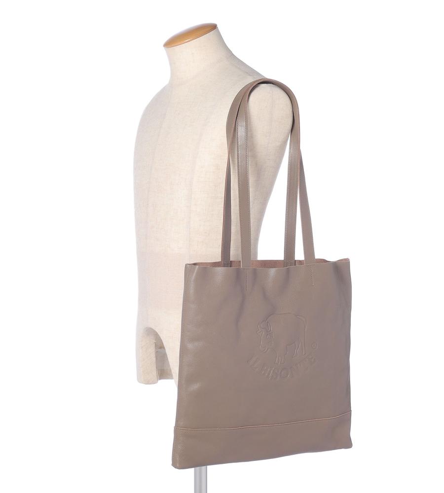 ロゴとブランドマークであるバッファローを大きくフロントにあしらったインパクトのあるデザインのトートバッグ。ブランドの特徴でもある上質なレザー素材も魅力。シンプルなスクエアフォルムで使い勝手も抜群です。
