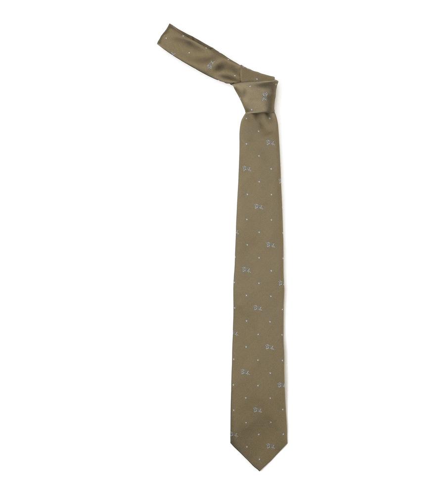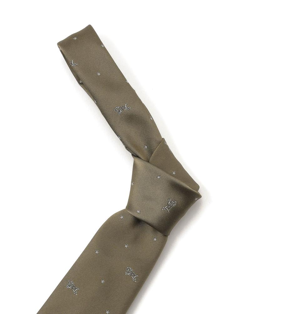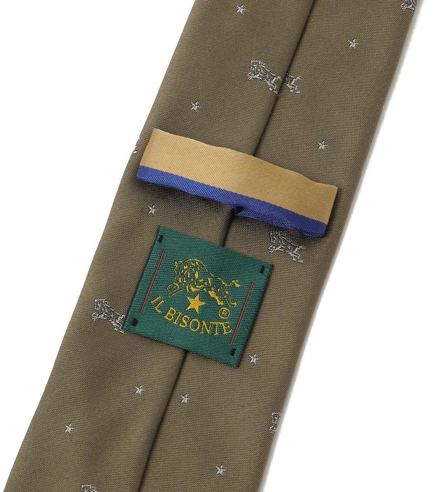 バッファローやスターモチーフの刺繍を配したネクタイ。自然な光沢感が上品な絹素材を使用。裏地にはマルチストライプ柄をあしらい、細部まで手の込んだデザインに。胸元をエレガントに演出し、幅広いシーンに最適な一本です。