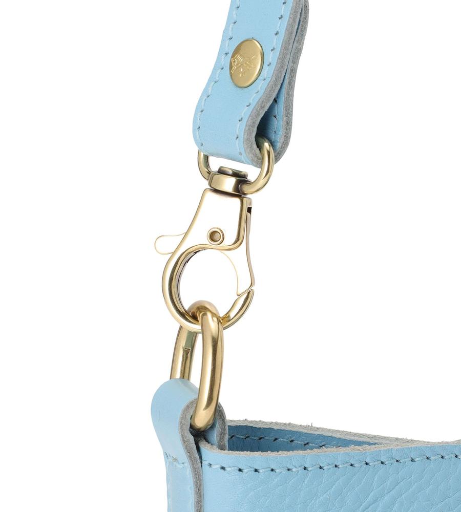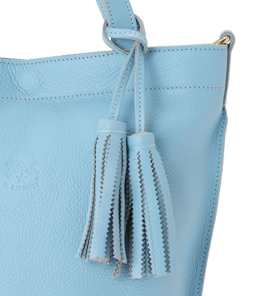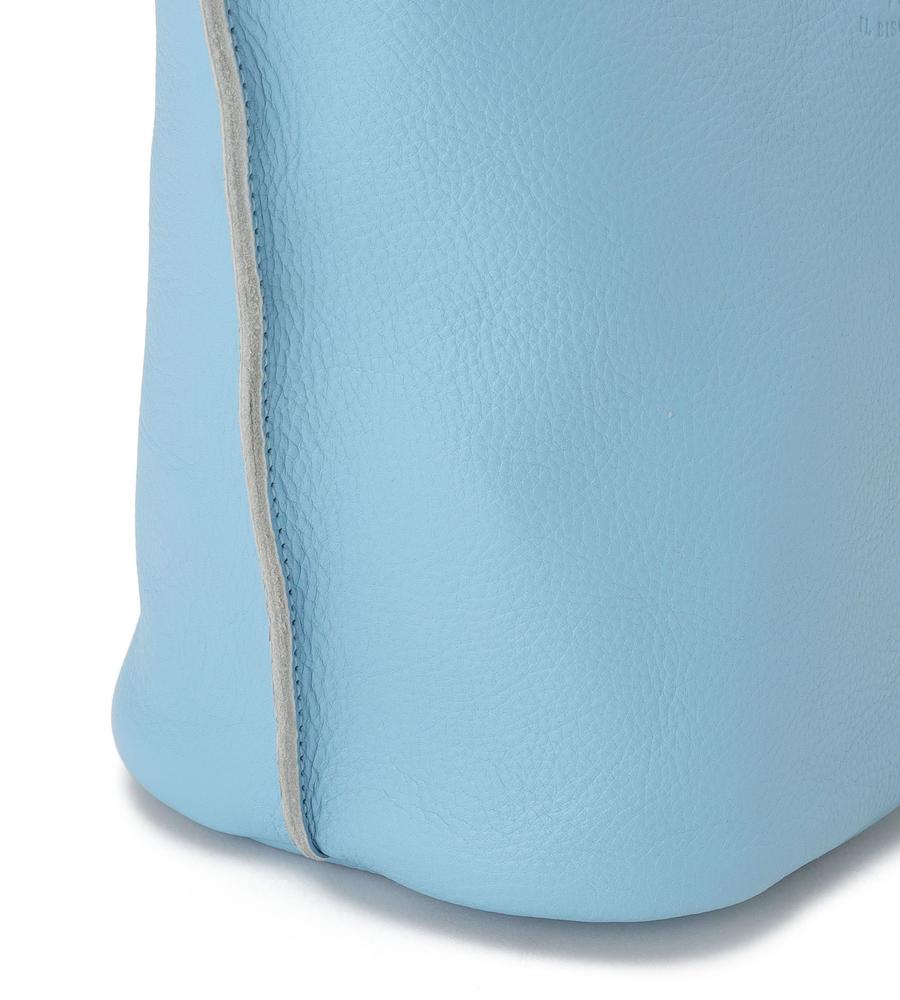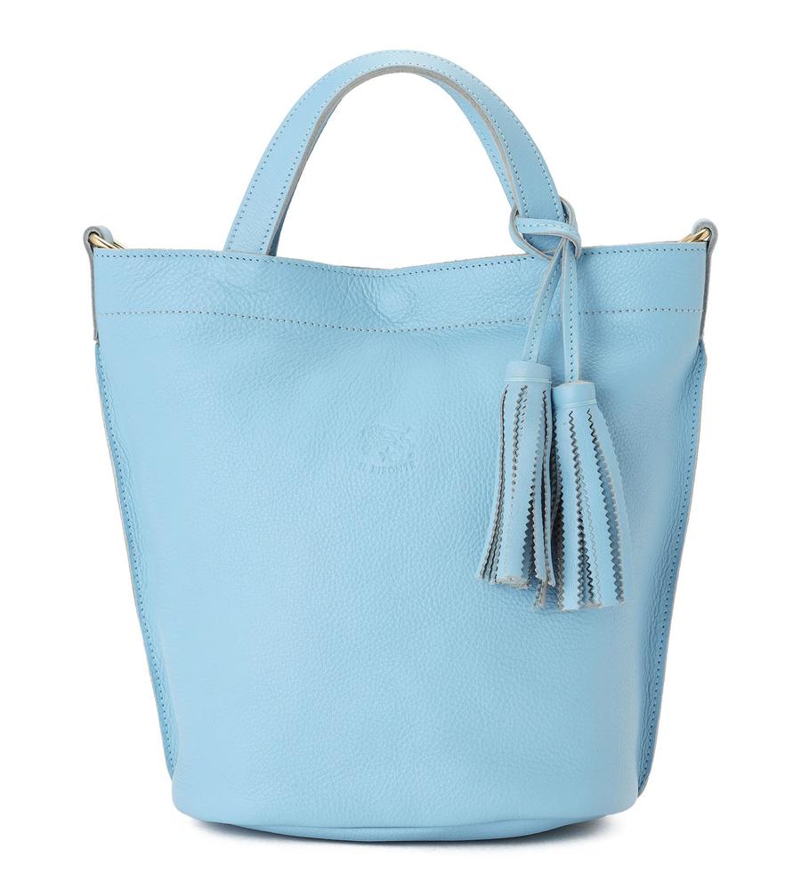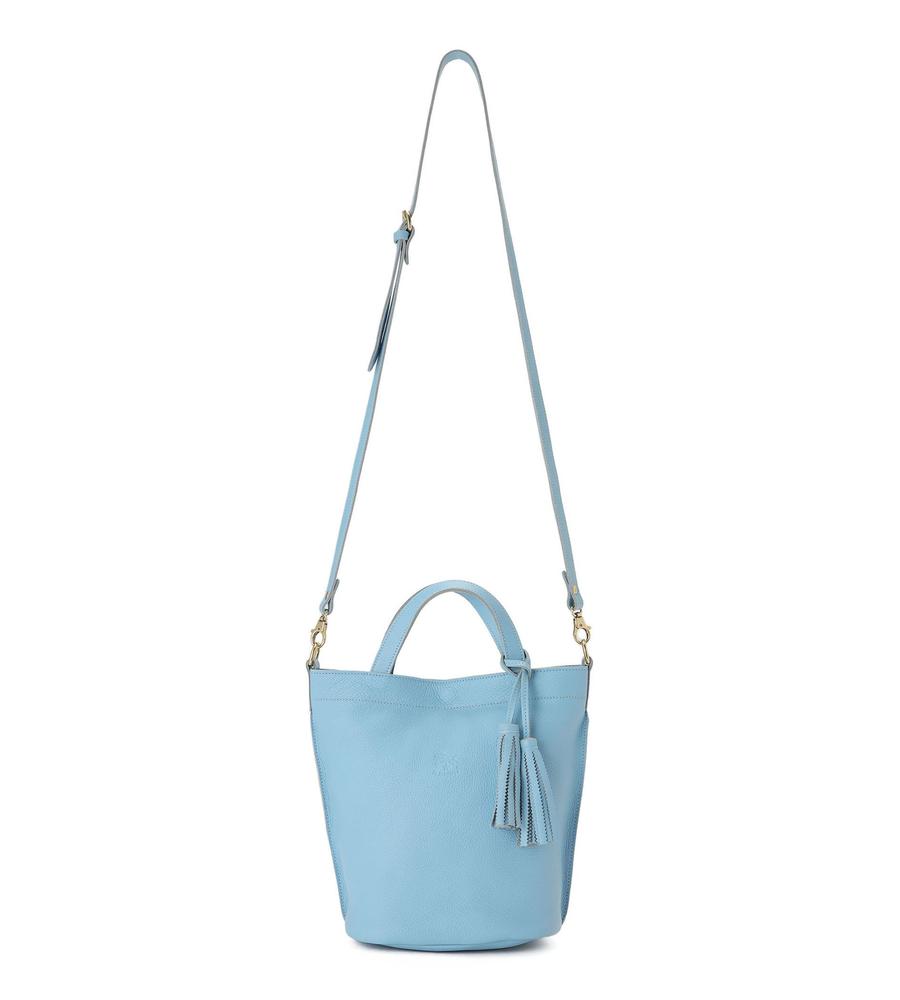 広めの底マチを備えたバケツ型の2wayレザーバッグ。優しい色味と柔らかな質感がエレガント。内側は裏地のない仕様で、便利なオープンポケットを設置。ショルダーストラップとチャームが付属し、持ち方のアレンジも楽しめます。
