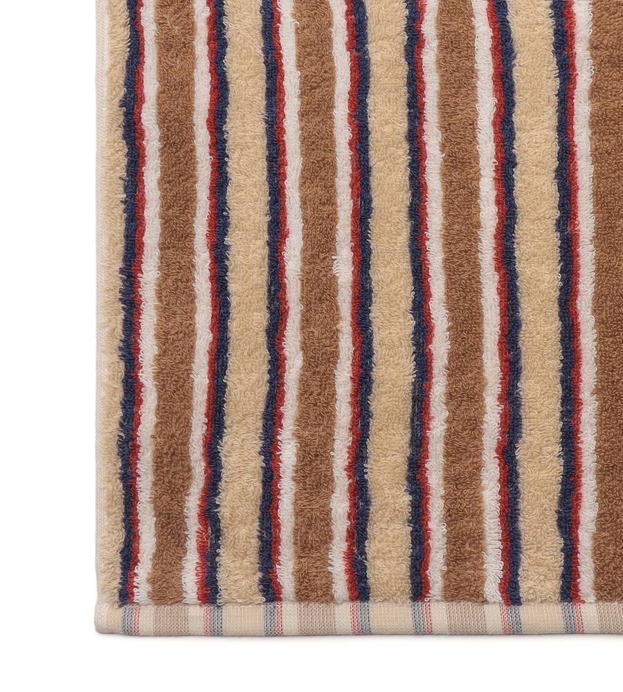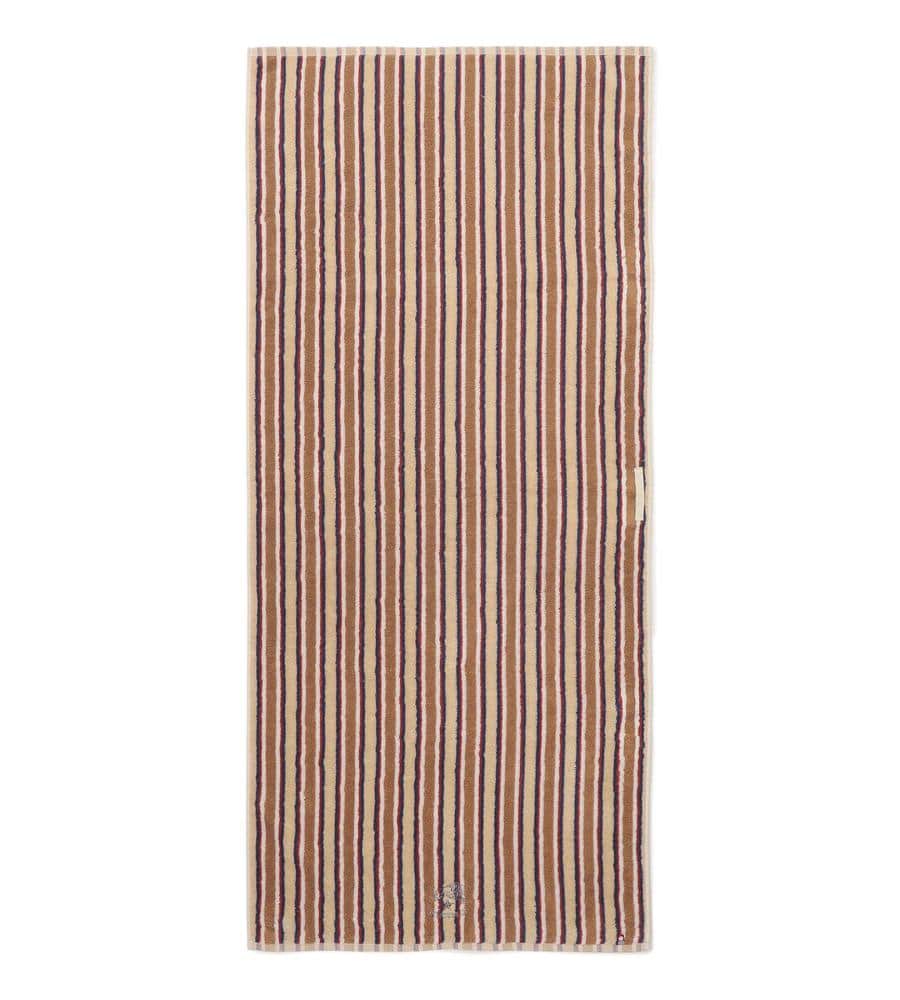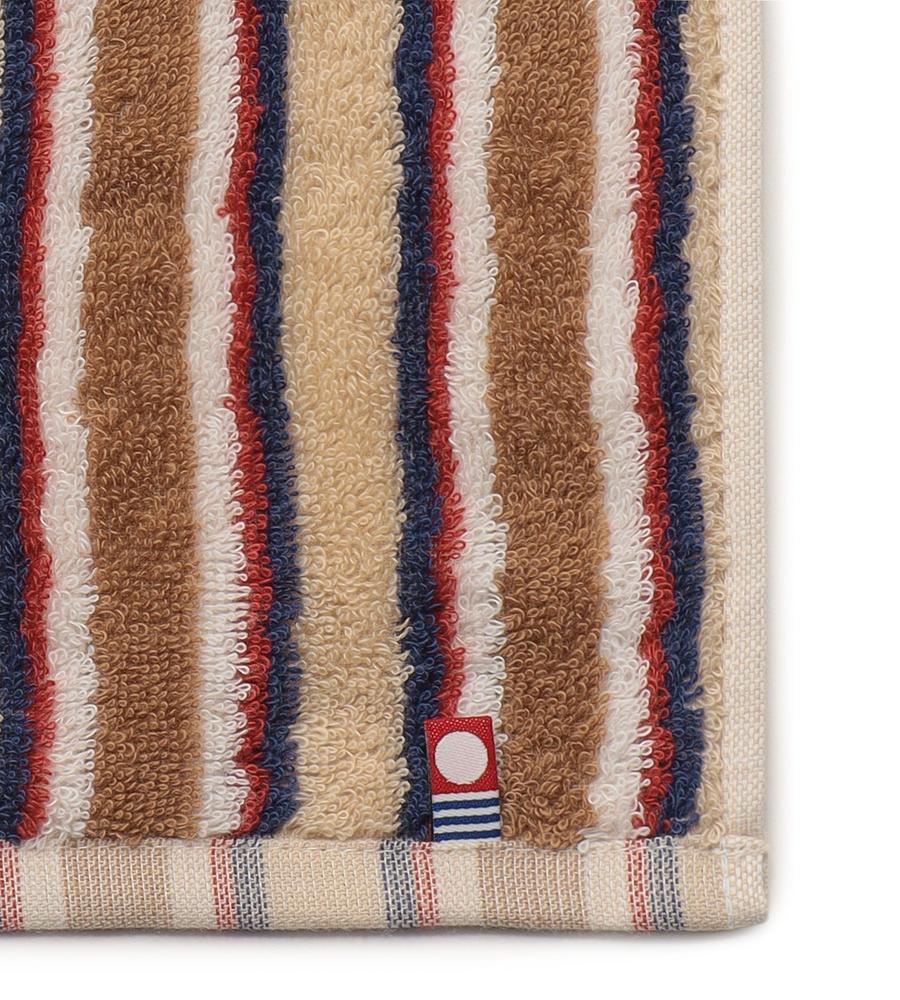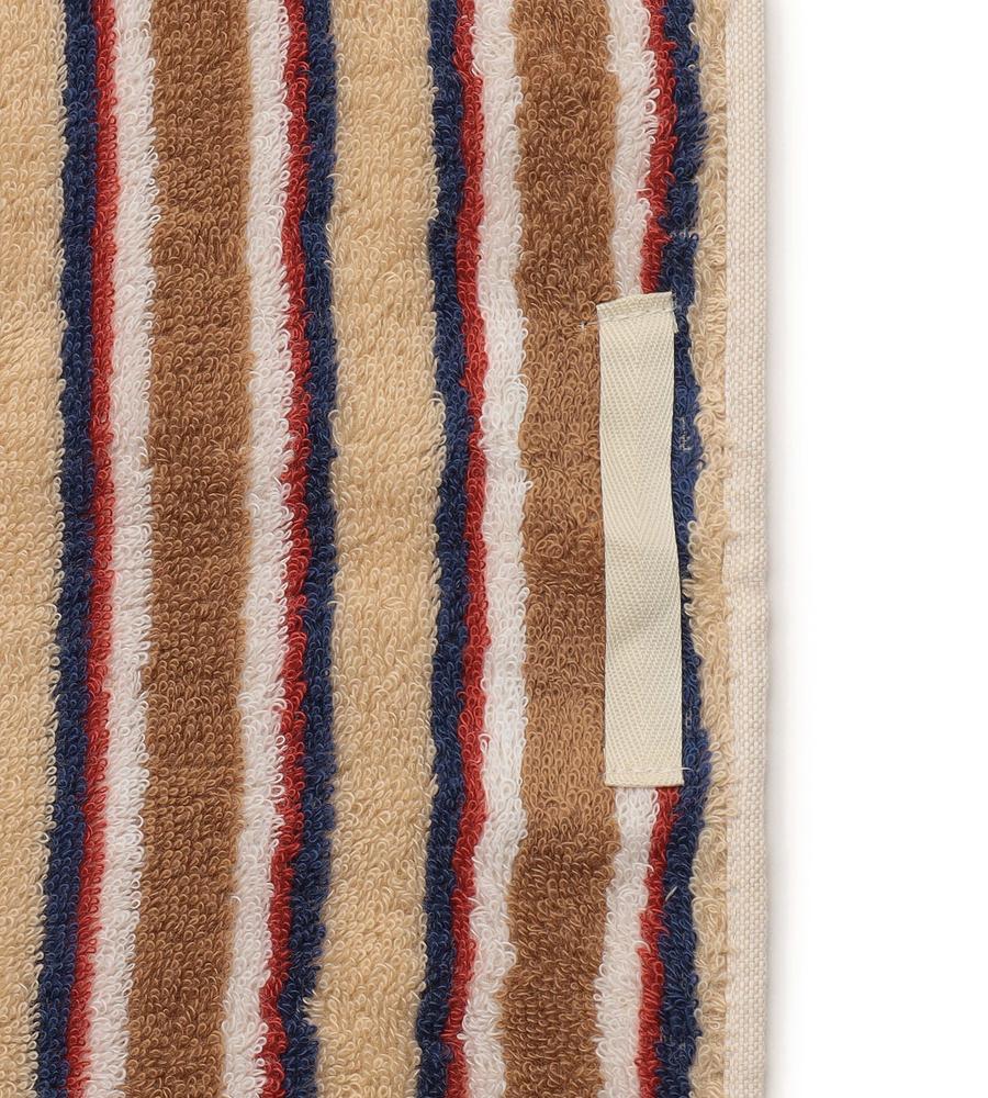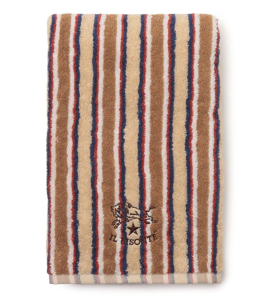 目の覚めるようなボーダー柄がエッジ―なバスタオル。ループつきで、フックなどにかけて乾かせるのが便利。上質なアイテムを日常使いしたい方に最適な一枚です。