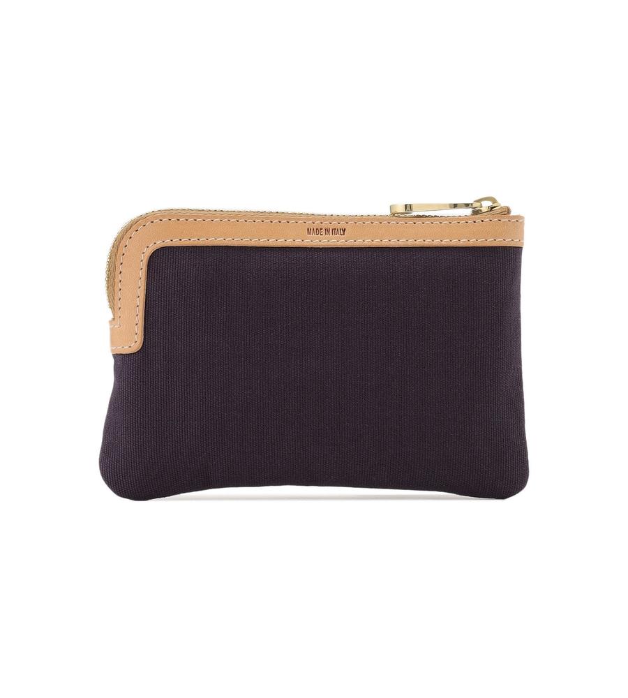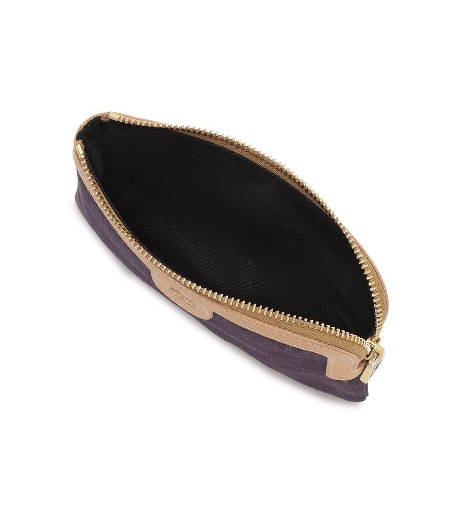牛革とキャンバス生地の異素材MIXで仕上げたポーチです。大きく開くファスナータイプで出し入れがしやすいのがポイント。メイク道具やアクセサリーなどの小物類がきちんと収納できます。無地からストライプ柄までそろえた豊富なカラバリも魅力。自分へのご褒美はもちろんプレゼントにもおすすめのアイテムです。