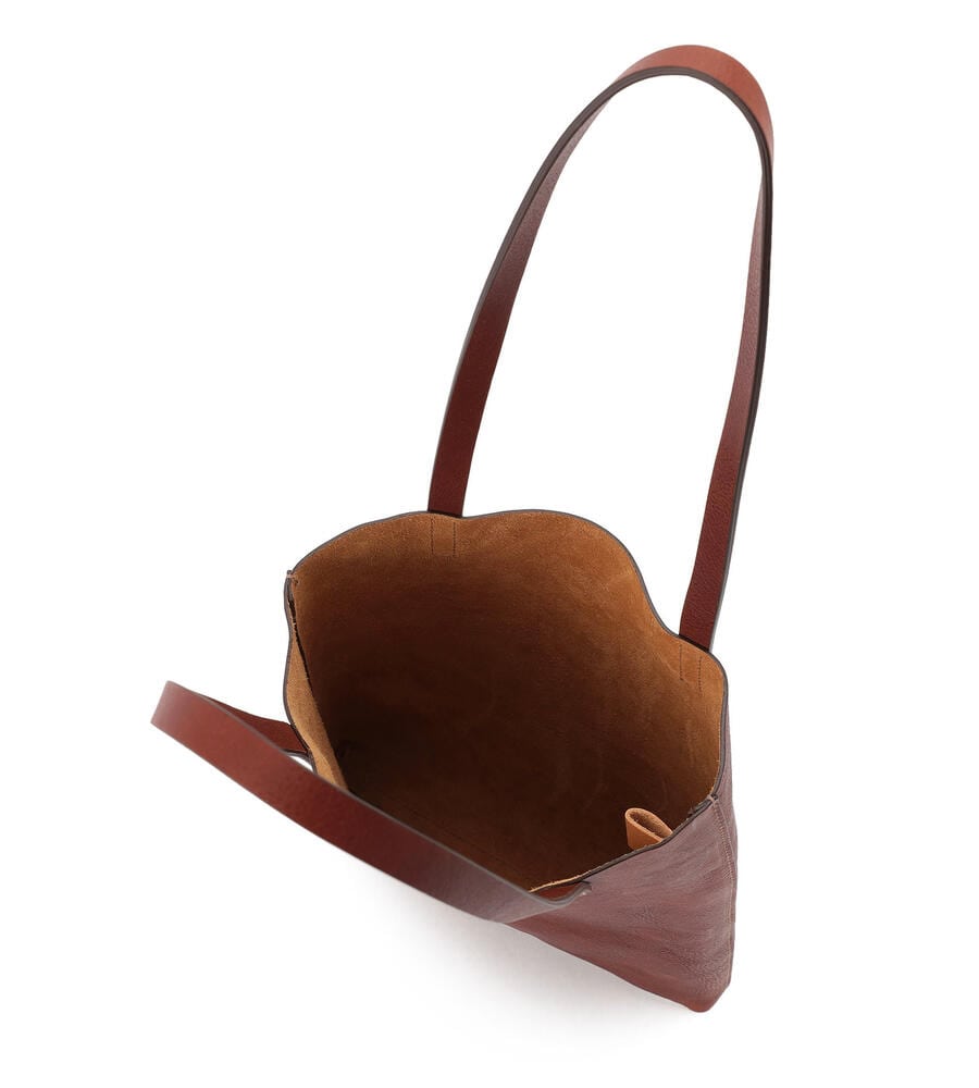 どんな装いにも馴染むスクエアフォルムのトートバッグ。レザーの質感を際立たせたシンプルな佇まいで、コーディネートを上品に演出します。手持ちにはもちろん、肩掛けにも重宝する長め設計の持ち手もポイント。広めの開口部で手荷物の出し入れもしやすく、使い勝手にこだわっておつくりしたひと品です。