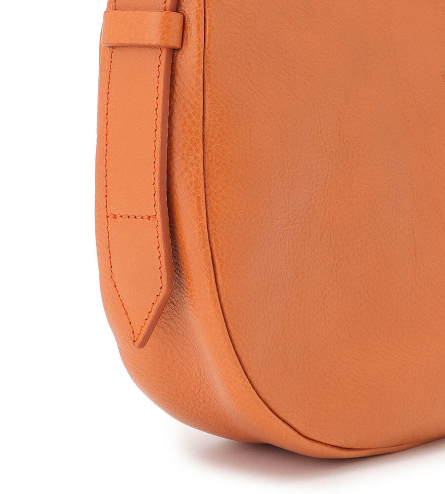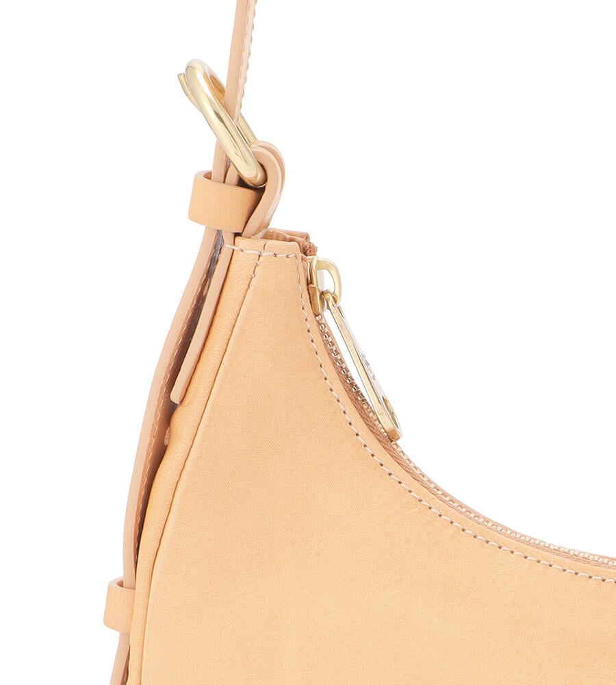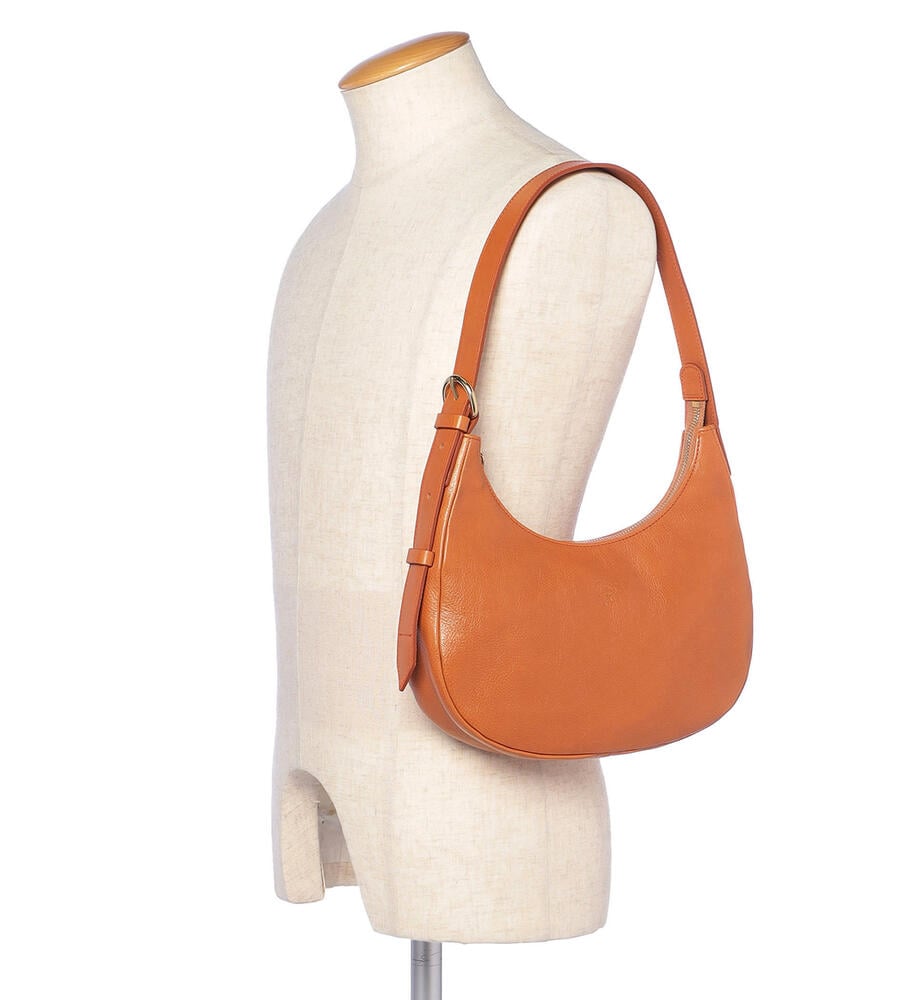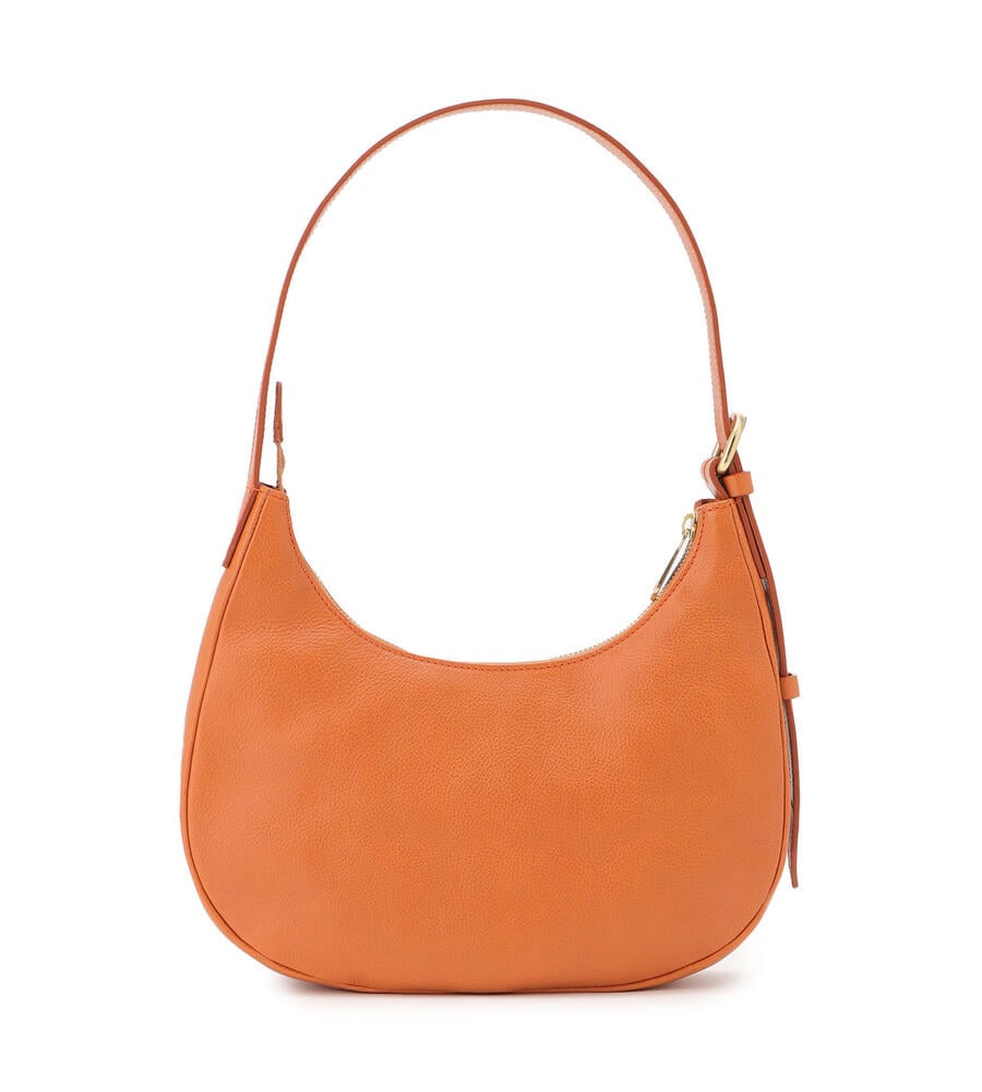 肌触りの良いカーフスキンで仕立てられたショルダーバッグ。ブランドロゴの型押しがワンポイントのスタイリッシュなデザイン。ショルダーとアームにぴったりと沿うカーブライン、小ぶりなシルエットが魅力。中面はファスナー付きのポケットで小物の整理がしやすく機能面も優秀。お出かけに便利なアイテムです。