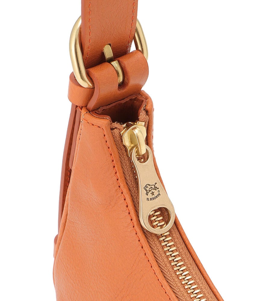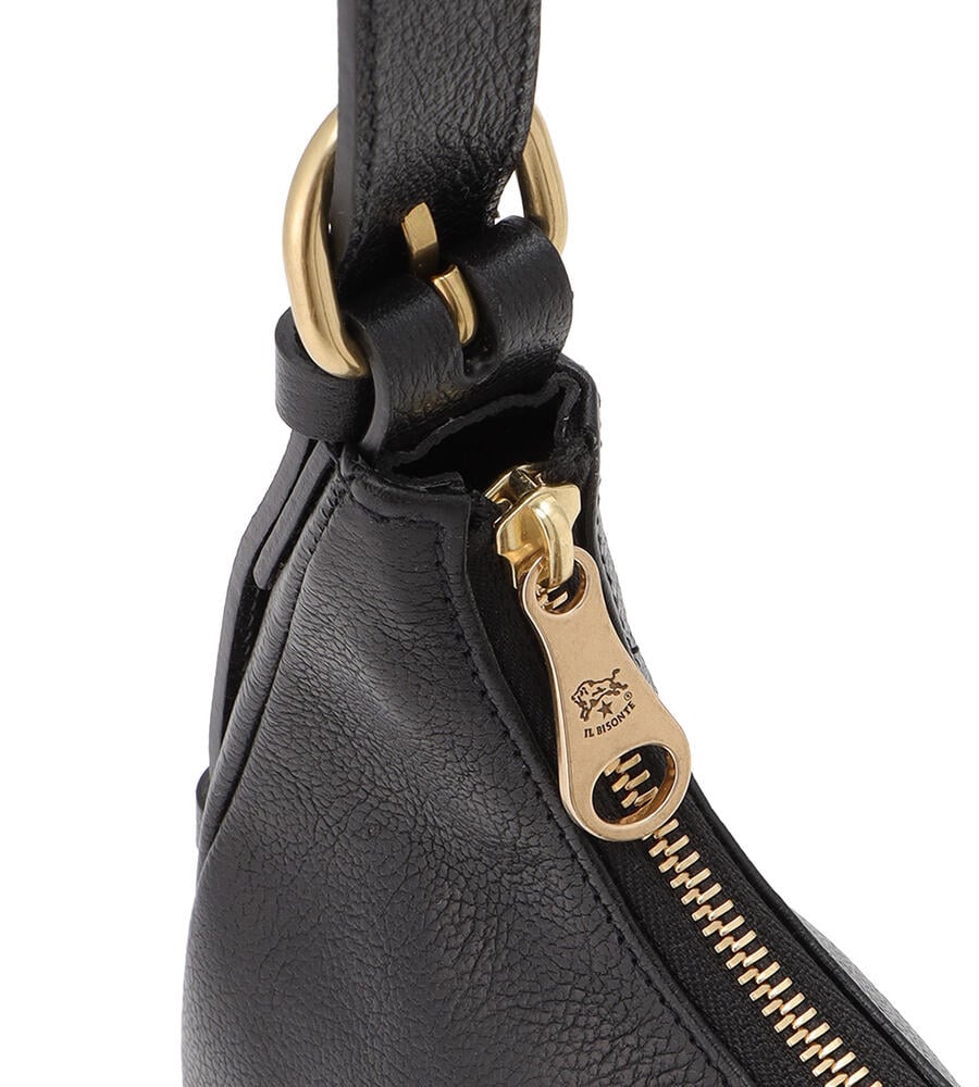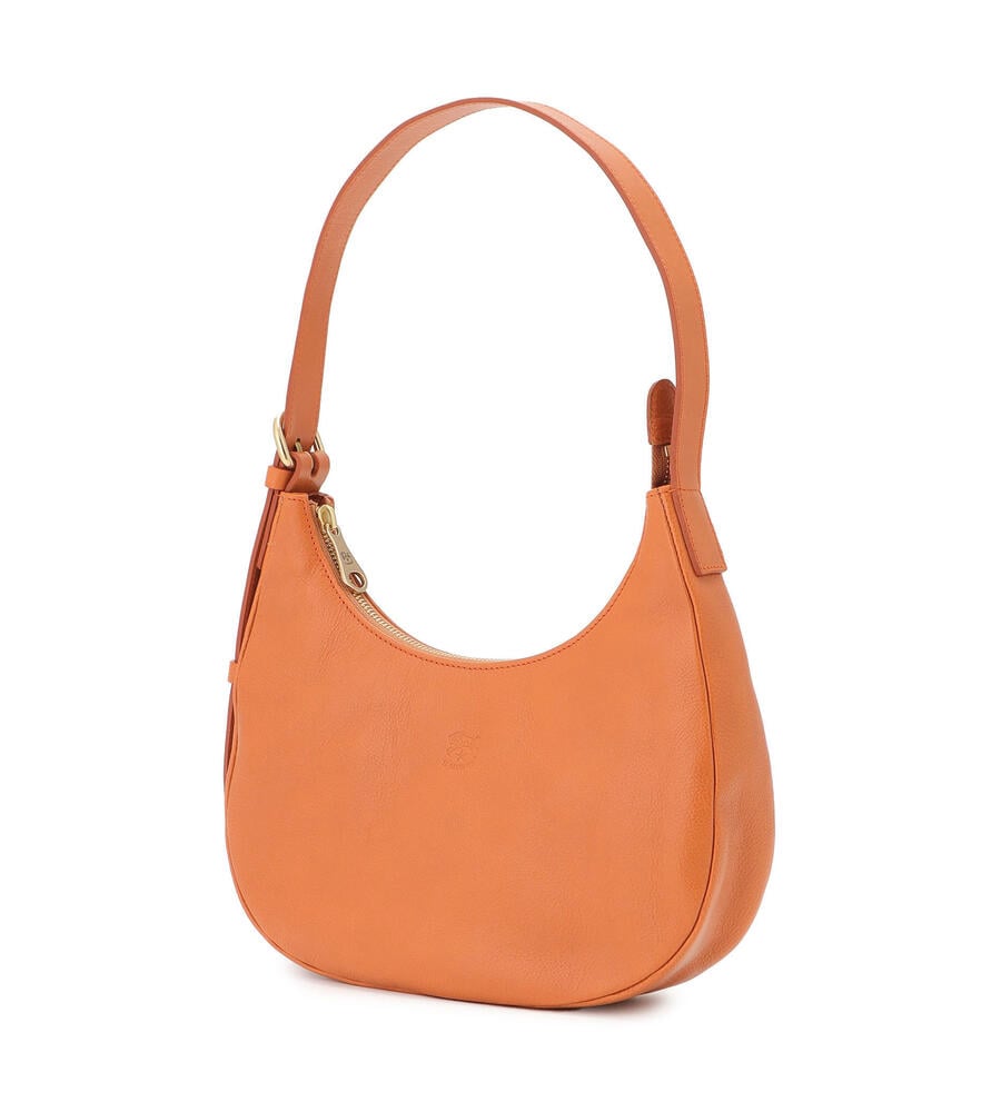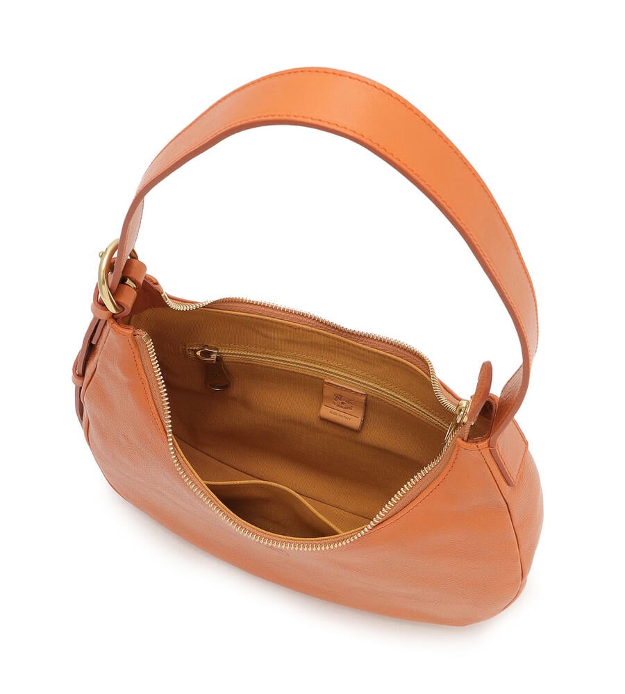 肌触りの良いカーフスキンで仕立てられたショルダーバッグ。ブランドロゴの型押しがワンポイントのスタイリッシュなデザイン。ショルダーとアームにぴったりと沿うカーブライン、小ぶりなシルエットが魅力。中面はファスナー付きのポケットで小物の整理がしやすく機能面も優秀。お出かけに便利なアイテムです。