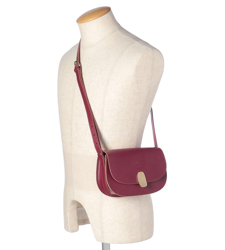 ブランドの魅力である上質なレザーで仕立てたショルダーバッグ。ブランドロゴの型押しとゴールドの留め具がデザインアクセント。丸みのあるエレガントなフォルムも特徴。お出かけコーディネートが完成するアイテムです。