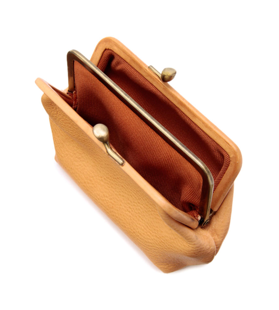 使い勝手のよいガマ口タイプのレザーコインパース。内側には仕切りがついており、分類しやすいのが特徴です。ちょっとした外出のお財布代わりになる最適なサイズです。