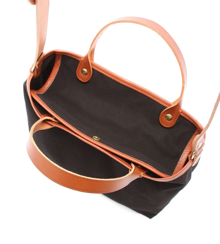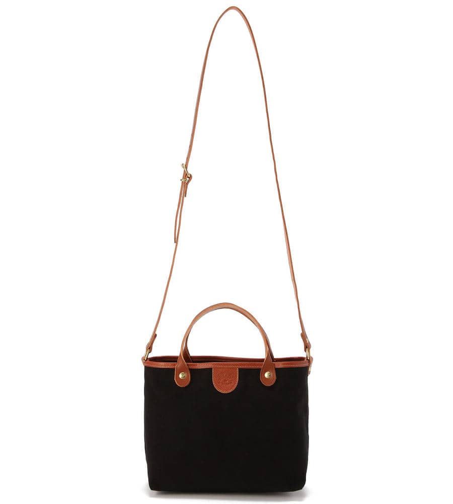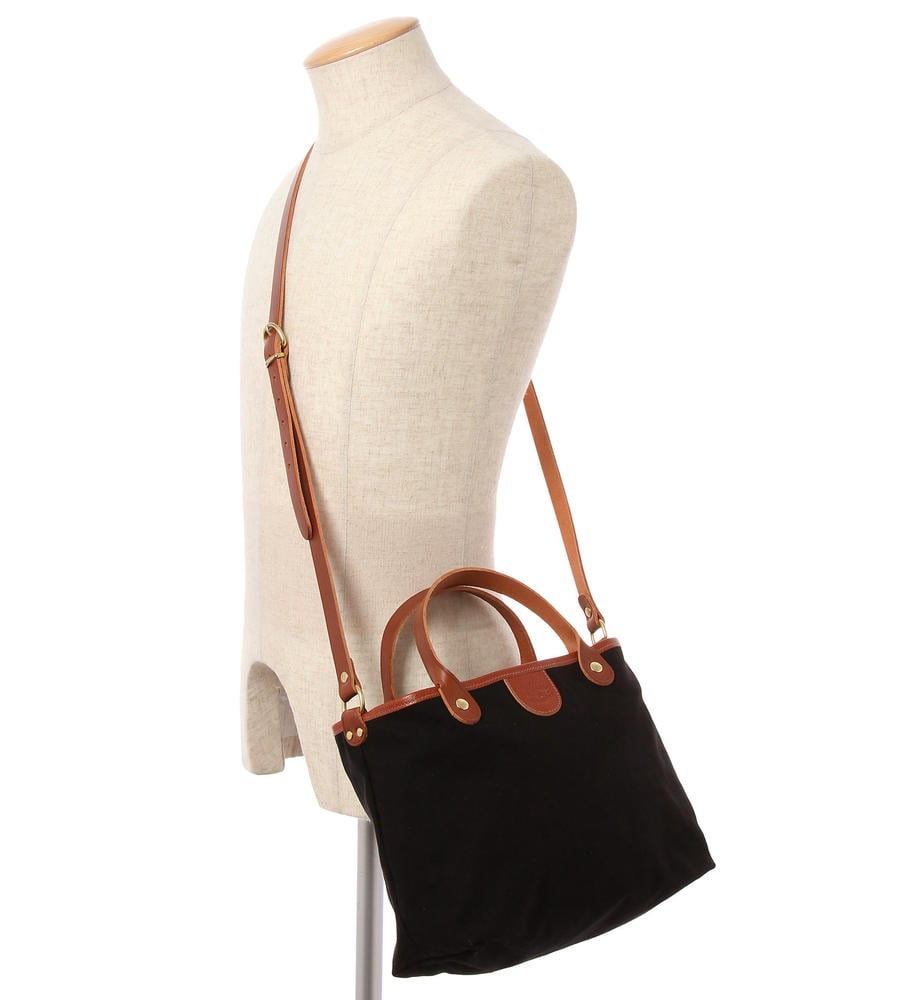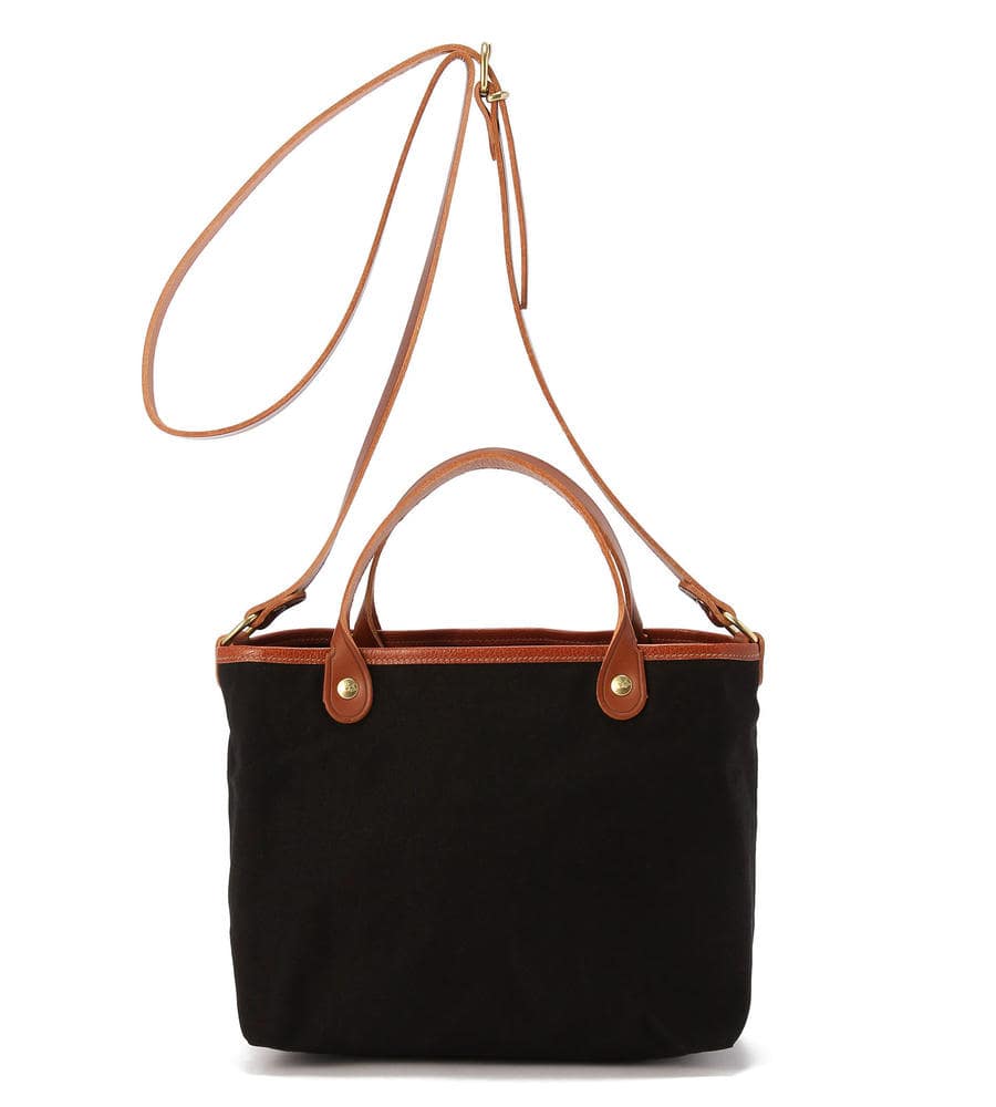 軽快なキャンパス地に重厚感のあるカウレザーをトリミングしリッチに仕上げたバッグです。カジュアルにはもちろんキレイ系にもマッチするトラッド風の上品なデザインが大人のデイリーユースにマスト。便利なショルダ―ストラップつき。