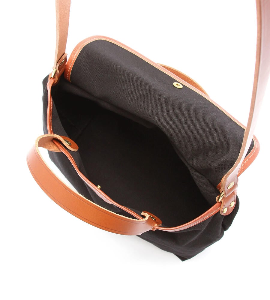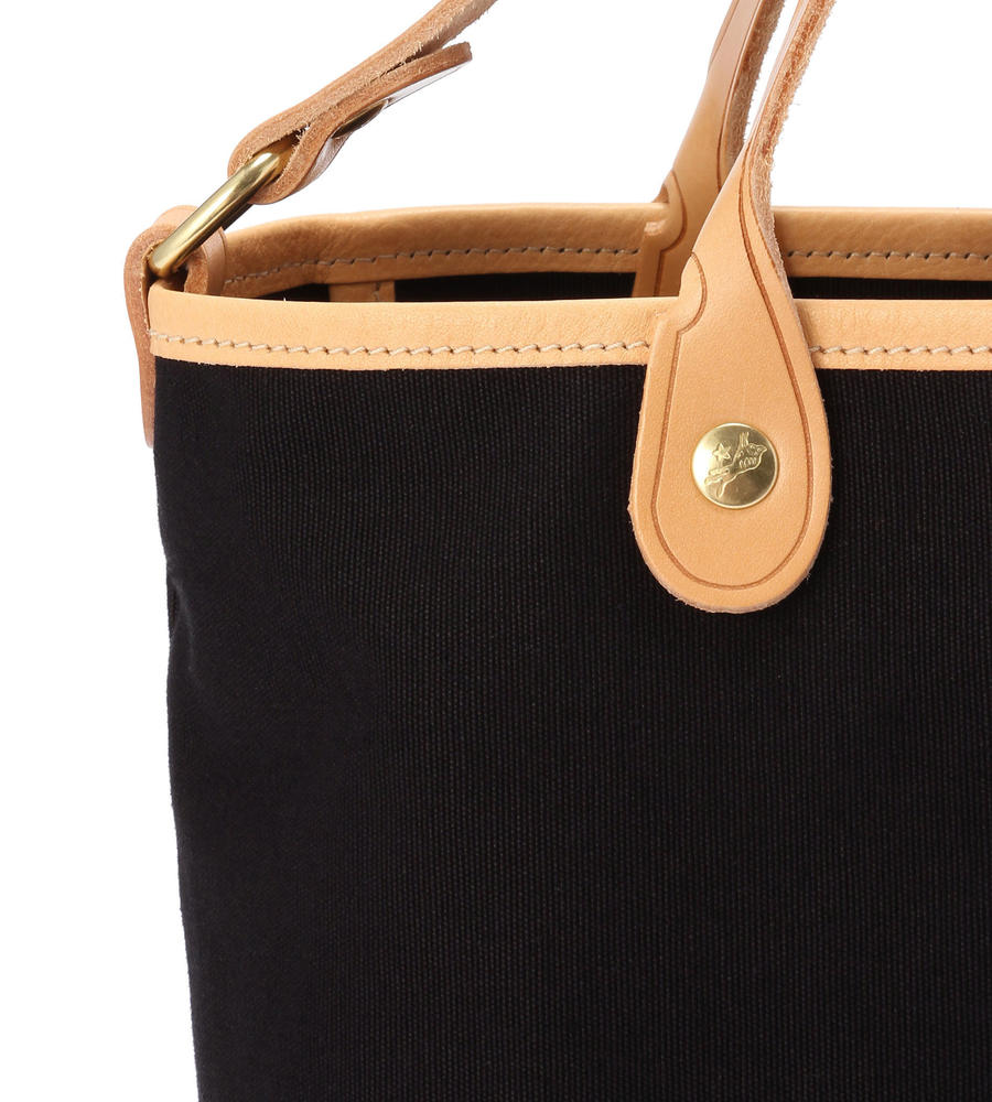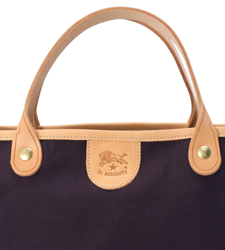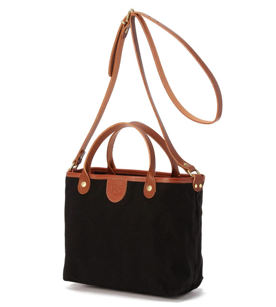 軽快なキャンパス地に重厚感のあるカウレザーをトリミングしリッチに仕上げたバッグです。カジュアルにはもちろんキレイ系にもマッチするトラッド風の上品なデザインが大人のデイリーユースにマスト。便利なショルダ―ストラップつき。