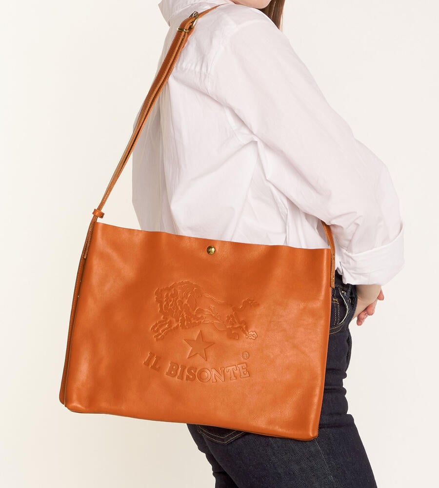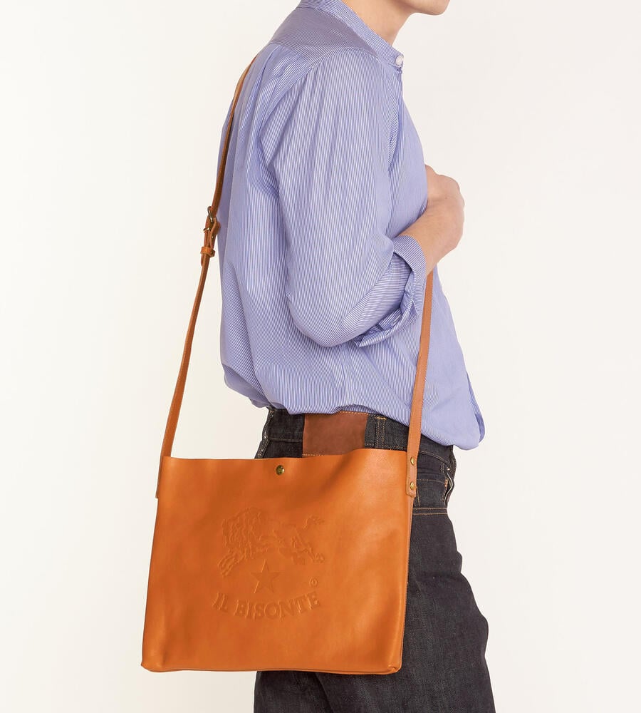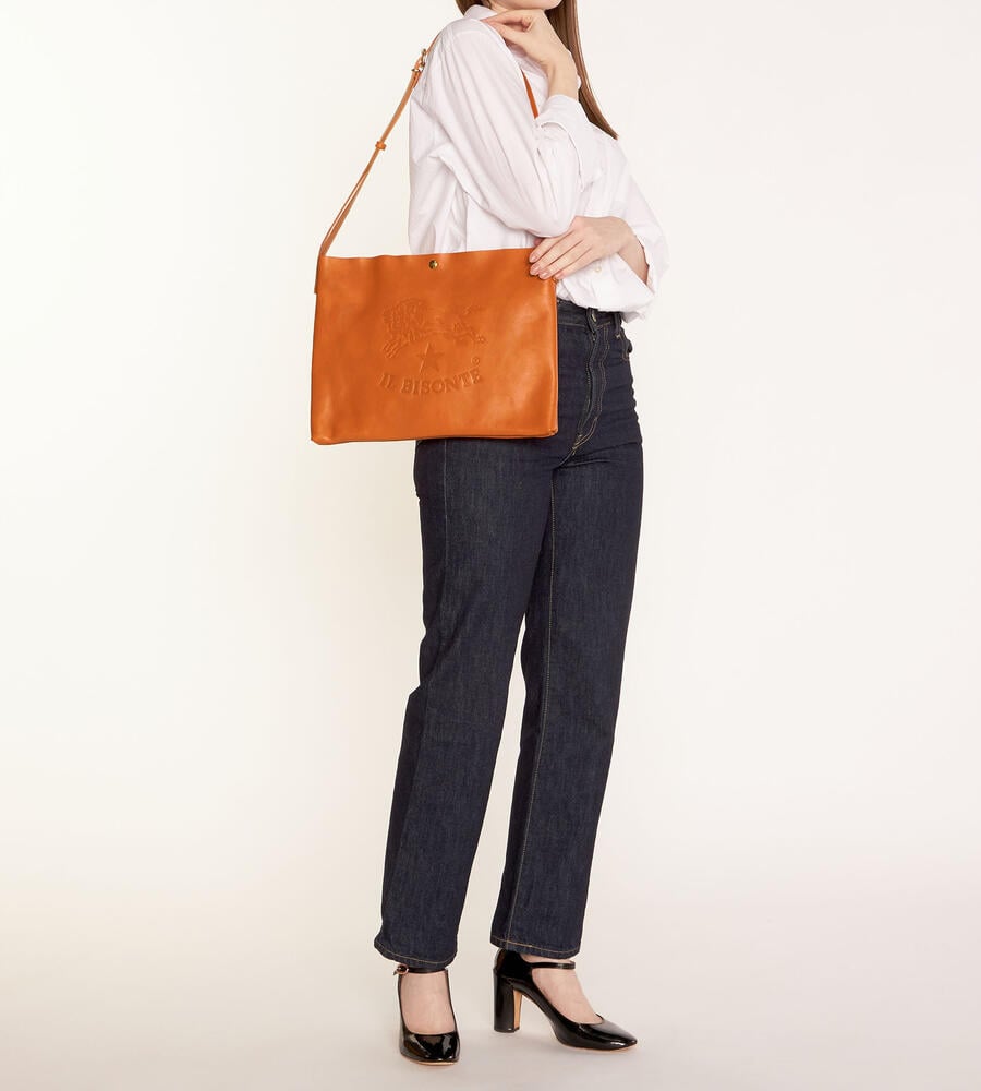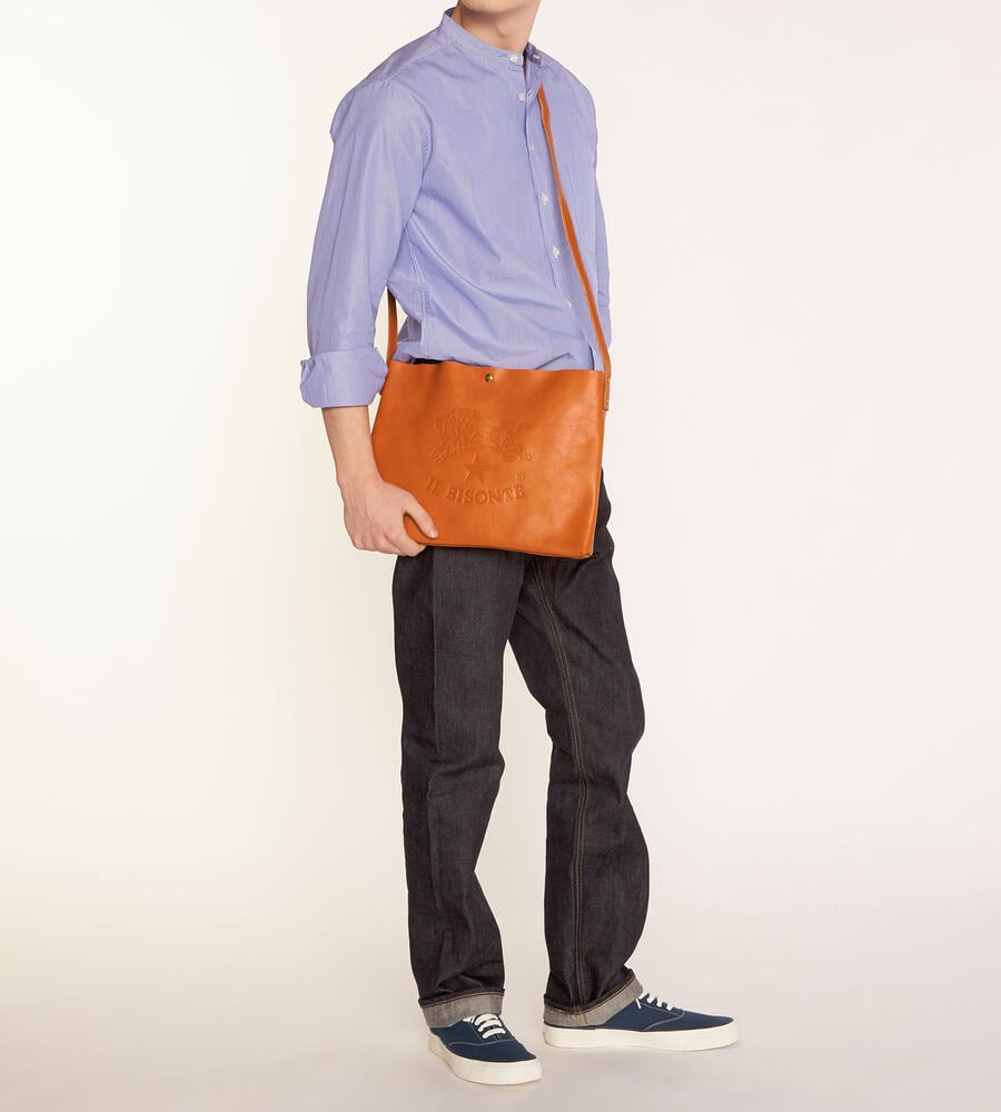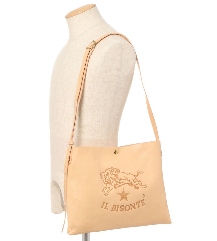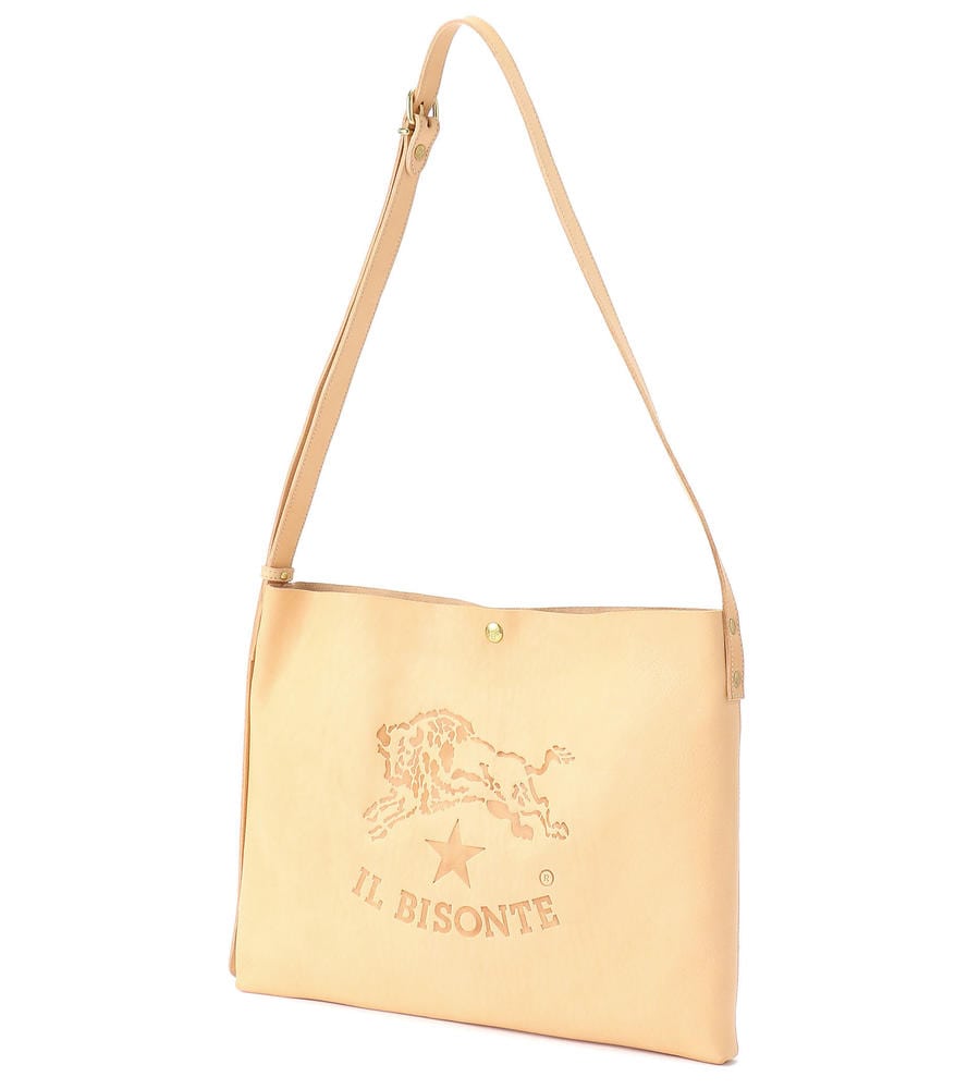 大胆にバイソンロゴを刻印したレザーバッグ。コンパクトな薄型デザインで、デイリーのちょっとした外出や自転車に乗る時などにも便利です。ストラップは長さが調整できます。