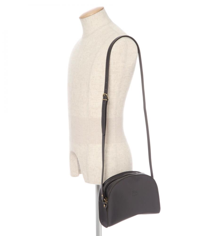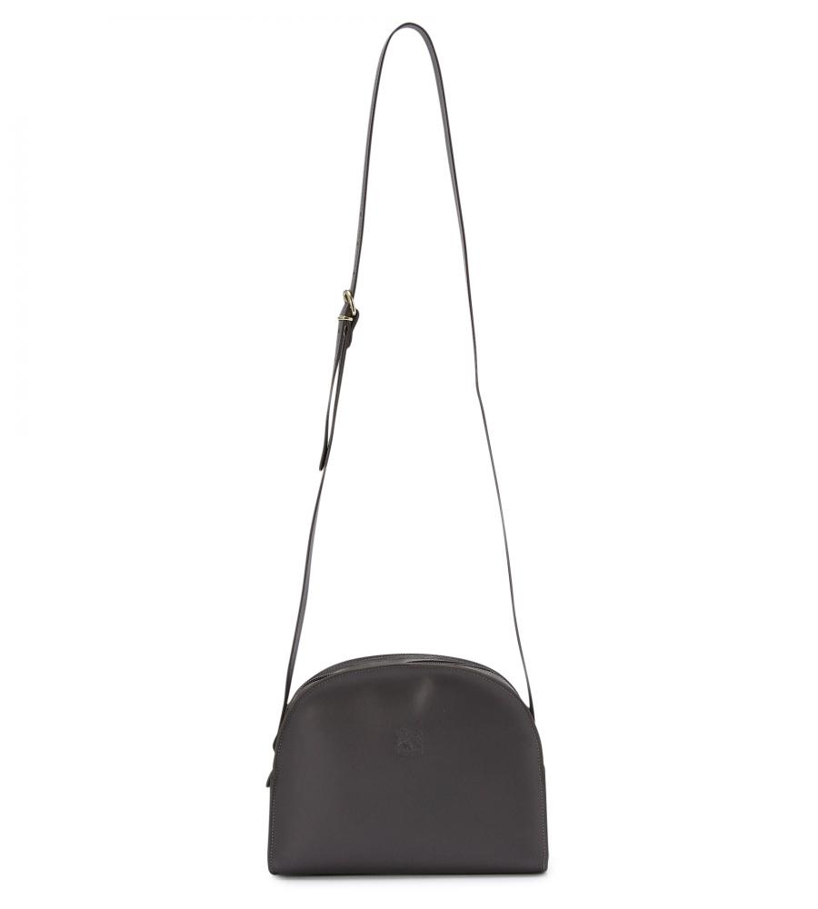 コンパクトなフォルムがシンプルスタイリッシュなバッグ。サイドまで大きく開くファスナーは中身も取り出しやすく、使い勝手も抜群。なめらかなレザーの質感がエレガントな一品です。