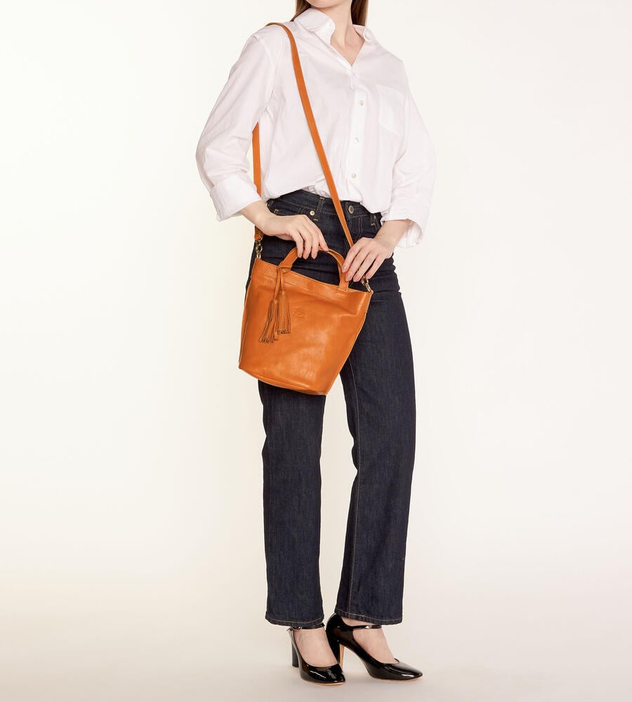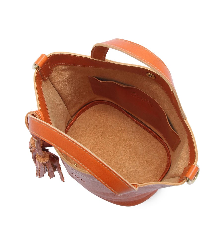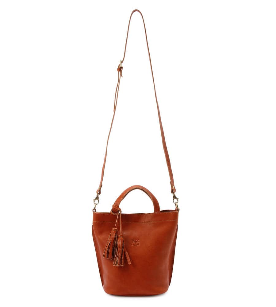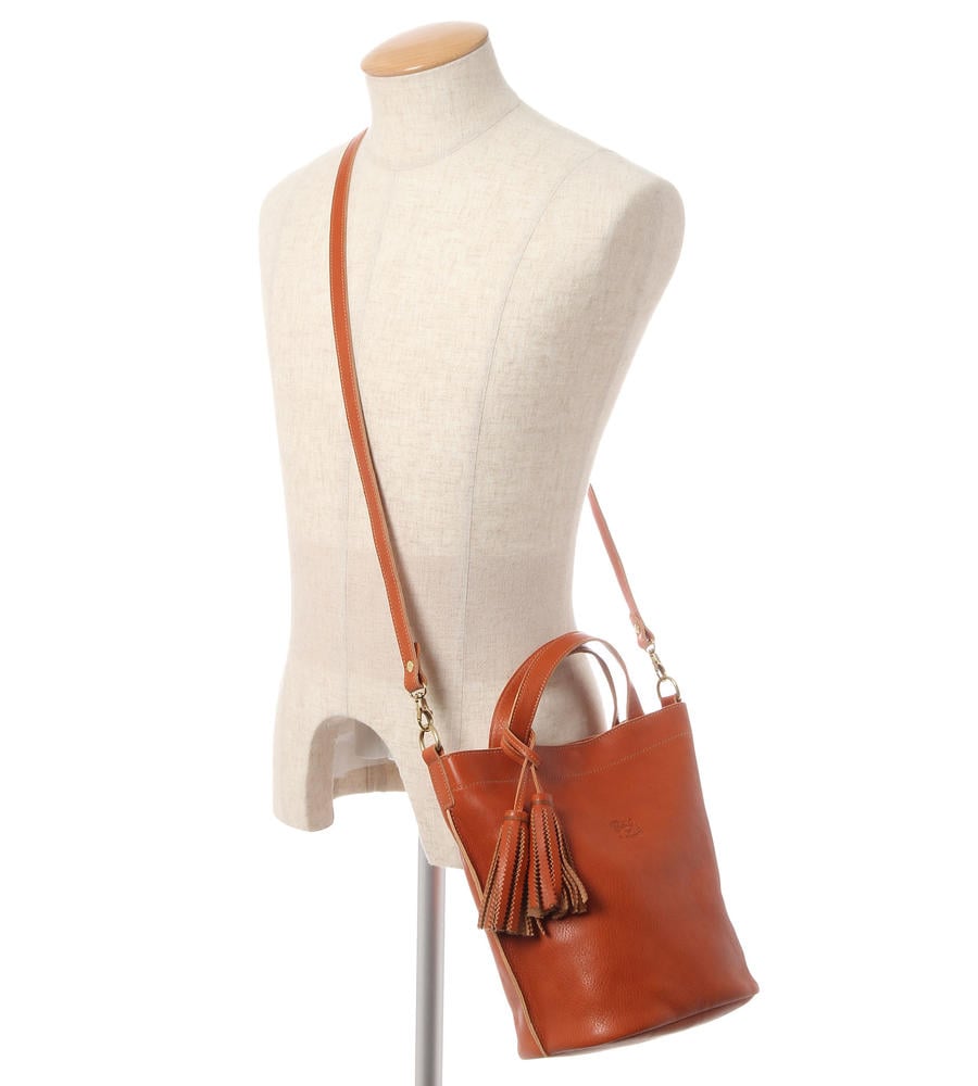 大きめのタッセルがアクセントになったバケツ型バッグ。付属のベルトをつければショルダーとしても使える2way仕様になっています。内側には小物収納に便利なポケットが1つ。デイリーに使いやすいサイジングが魅力です。
