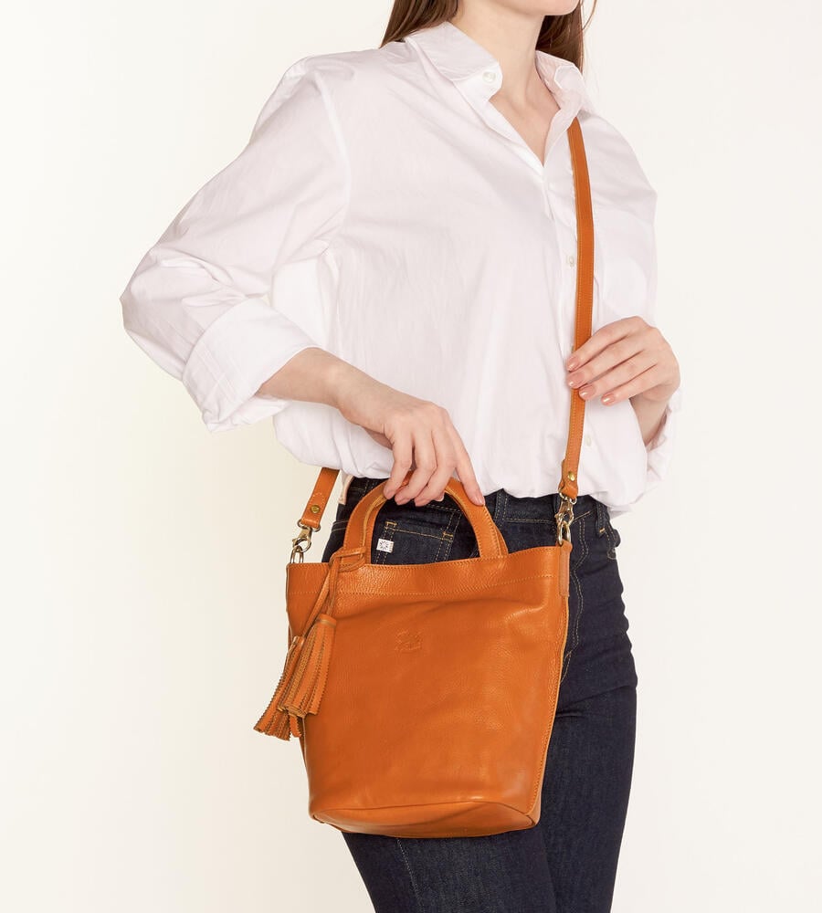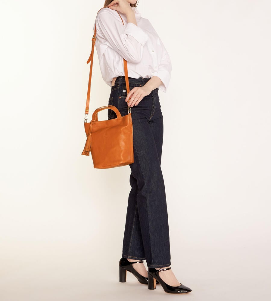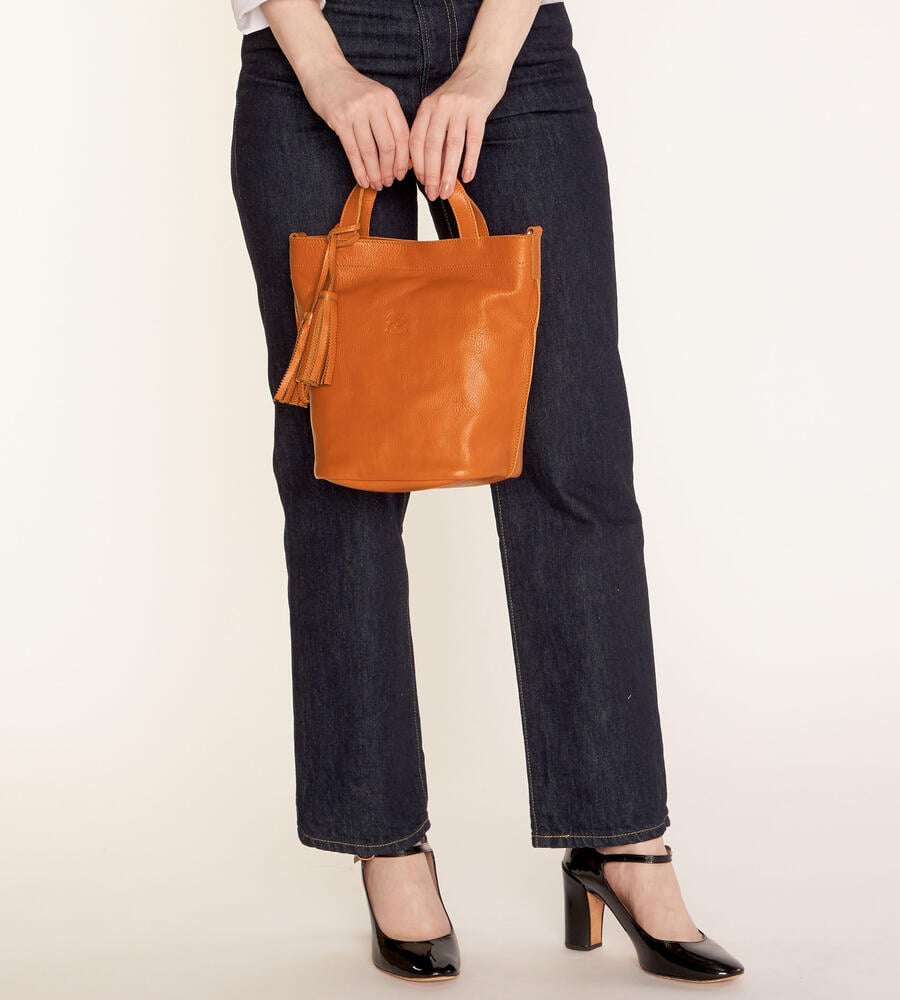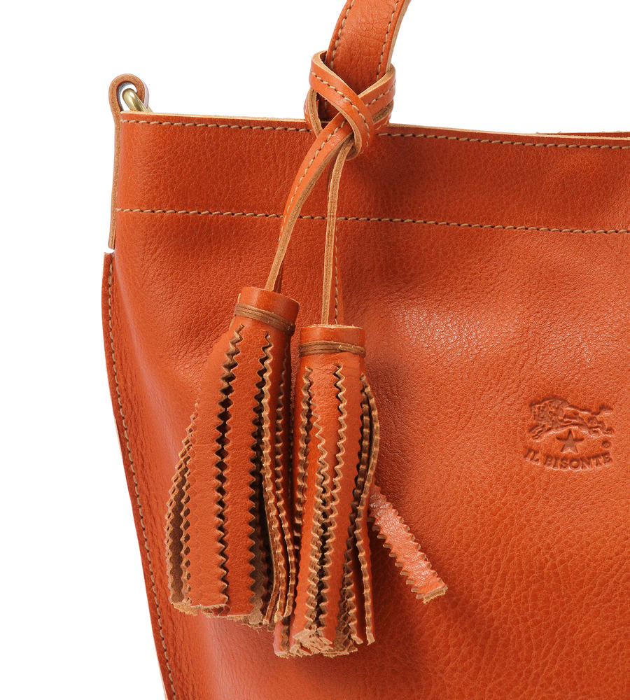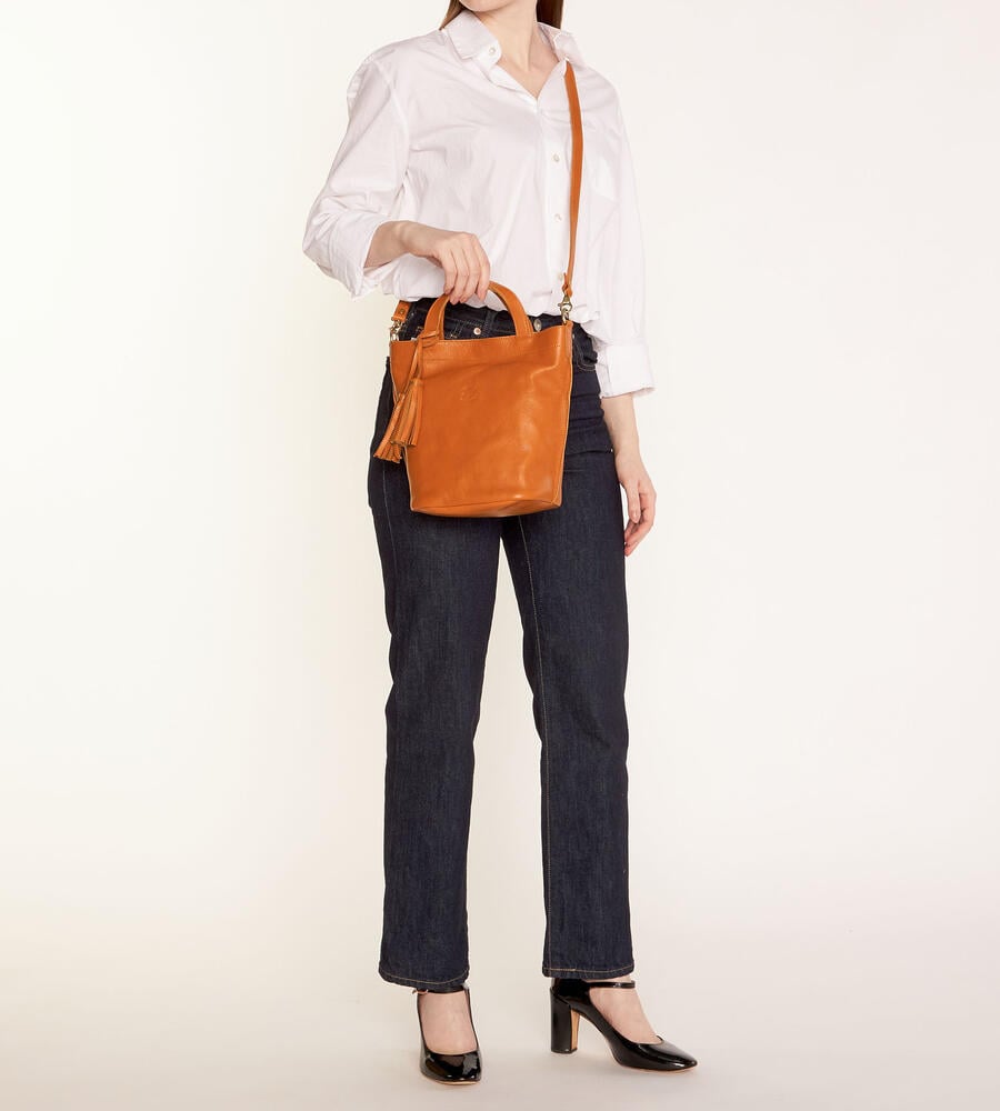 大きめのタッセルがアクセントになったバケツ型バッグ。付属のベルトをつければショルダーとしても使える2way仕様になっています。内側には小物収納に便利なポケットが1つ。デイリーに使いやすいサイジングが魅力です。