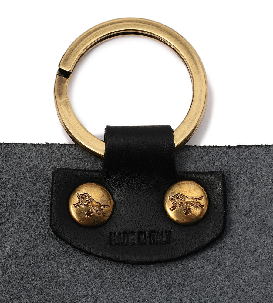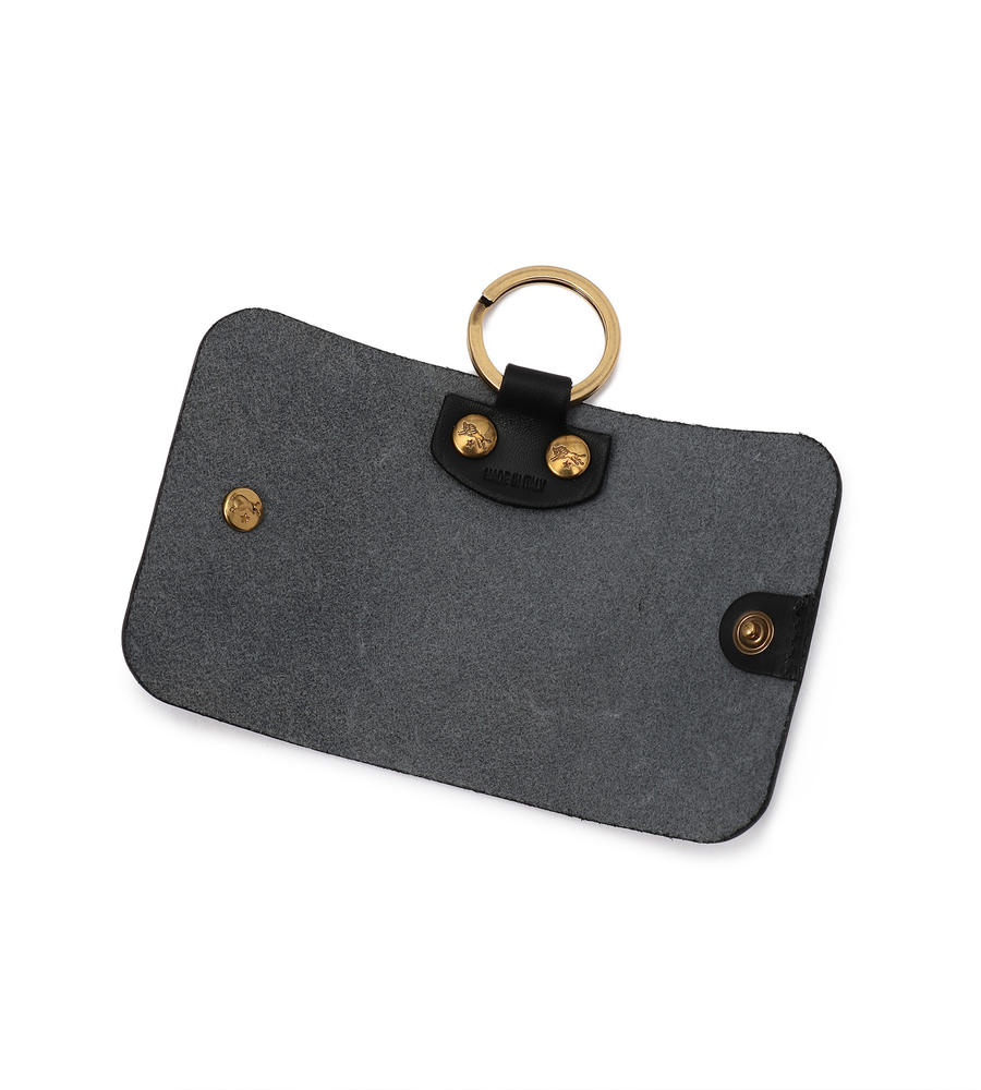 すっきりとスマートに携行できる、コンパクトなロール型のキーケース。スナップボタンにより手軽に開閉でき、内部にはよく使う鍵を掛けておける大きめのキーリングを配しています。さりげなく型押ししたロゴがアクセントに。