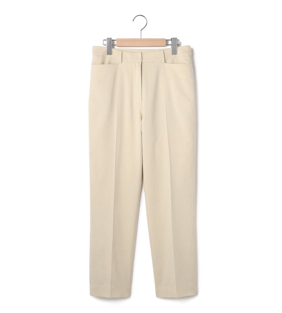 シンプルなストレートシルエットのパンツ。センタープレス入りで、エレガントできちんと感のあるデザイン。足首のみえるアンクル丈で軽やかなムードを演出。ストレッチ素材で、身体の動きにフィットしストレスフリーなはき心地なのもポイント。お出かけからビジネスシーンまで幅広く活躍するアイテムです。