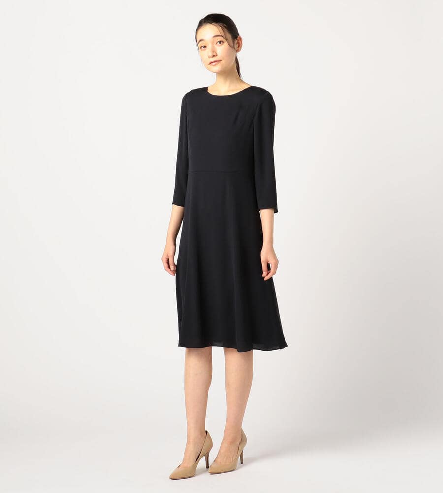 落ち感が美しい滑らかなサテンジョーゼット素材で仕立てたワンピース。ウエストで切り替え、裾に向かって優美に広がる女性らしいシルエットを叶えました。バックジップクロージャーで着脱もスムーズ。シンプルで洗練されたデザインはオケージョンスタイルにもおすすめです。