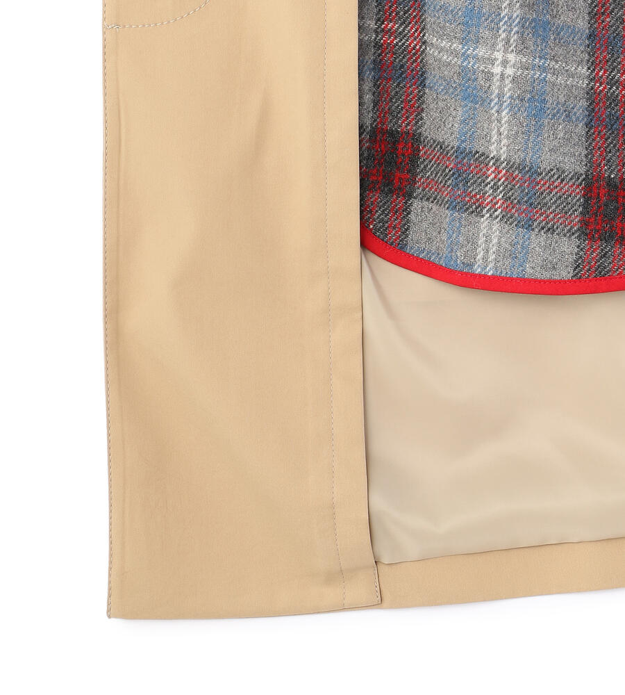 シンプルで洗練されたデザインがベーシックに着まわせるツイルコート。裾に向かってゆるやかに広がるAラインシルエット。首もとには1つボタン、前立てはすっきりとした印象の比翼仕立て。季節に合わせて取り外せるトラッドなチェック柄ライナーが華やかさをプラスしています。