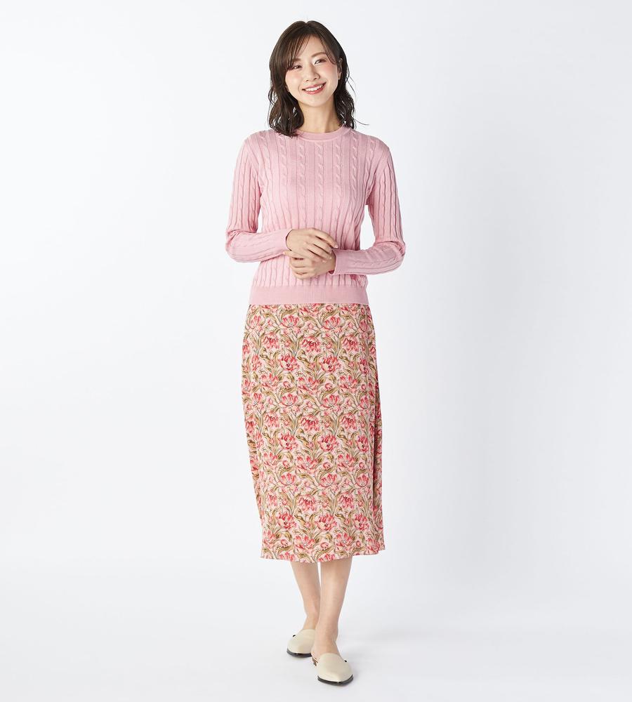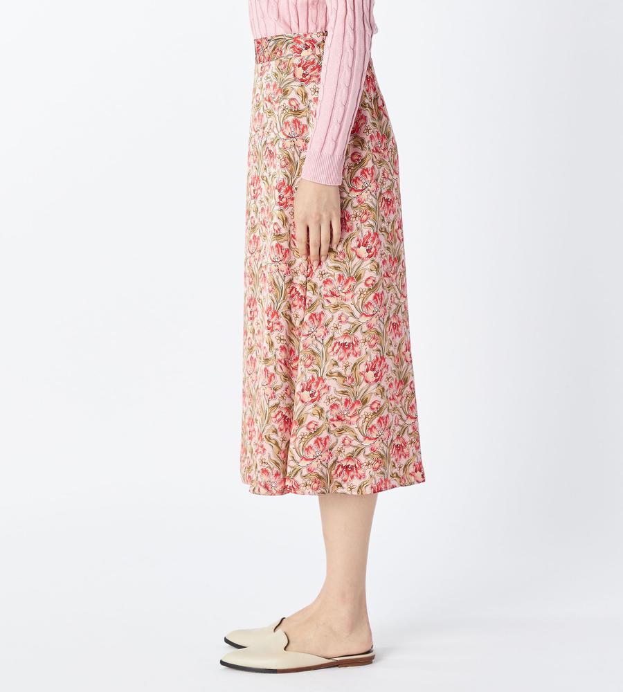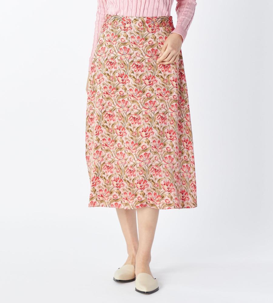 歩くたびに揺れるフレアシルエットが装いをエレガントに格上げするスカート。ヨーロッパならではの洗練を感じさせる配色が美しいフローラルプリントが、コーディネートのポイントになります。落ち着いた膝下のミディ丈で、上品な女性らしさが漂います。シンプルな無地ブラウス・ニットと相性抜群の1着です。