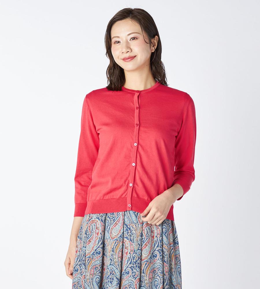 軽やかなでなめらかな着心地が自慢、ハイゲージニットで仕上げたカーディガンです。あわせるアイテムを選ばない定番のクルーネックデザイン、手首がのぞく9分袖が肌見せの抜け感をプラスします。同素材のプルオーバーニットとアンサンブルでそろえるのもおすすめ、紫外線や空調対策にもお使いいただけるアイテムです。