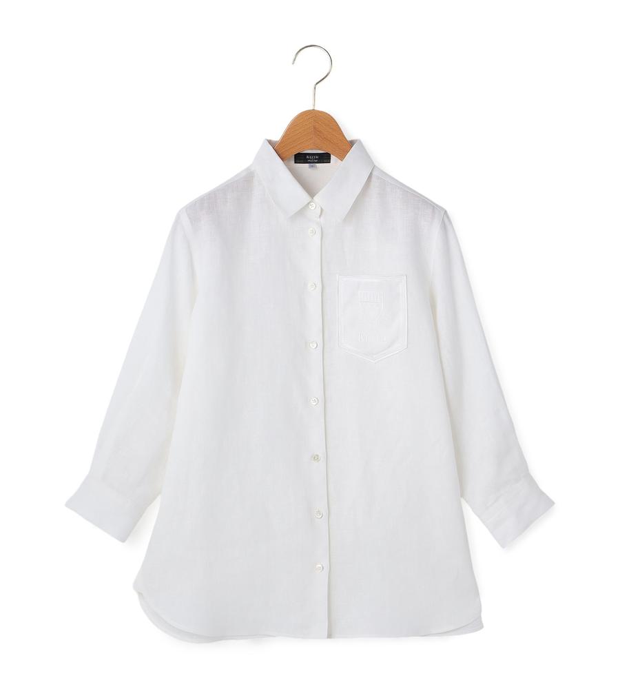 これからの季節にぴったりな肌にサラッと心地よく着られる素材で仕上げたシャツです。左胸のポケットには同色系の糸で刺繍をあしらい、さりげないおしゃれ心をプラスしました。手首がのぞく7分袖が肌見せの抜け感をプラス、1枚で着るのはもちろんボタンを開けて羽織りとして使うのもおすすめです。