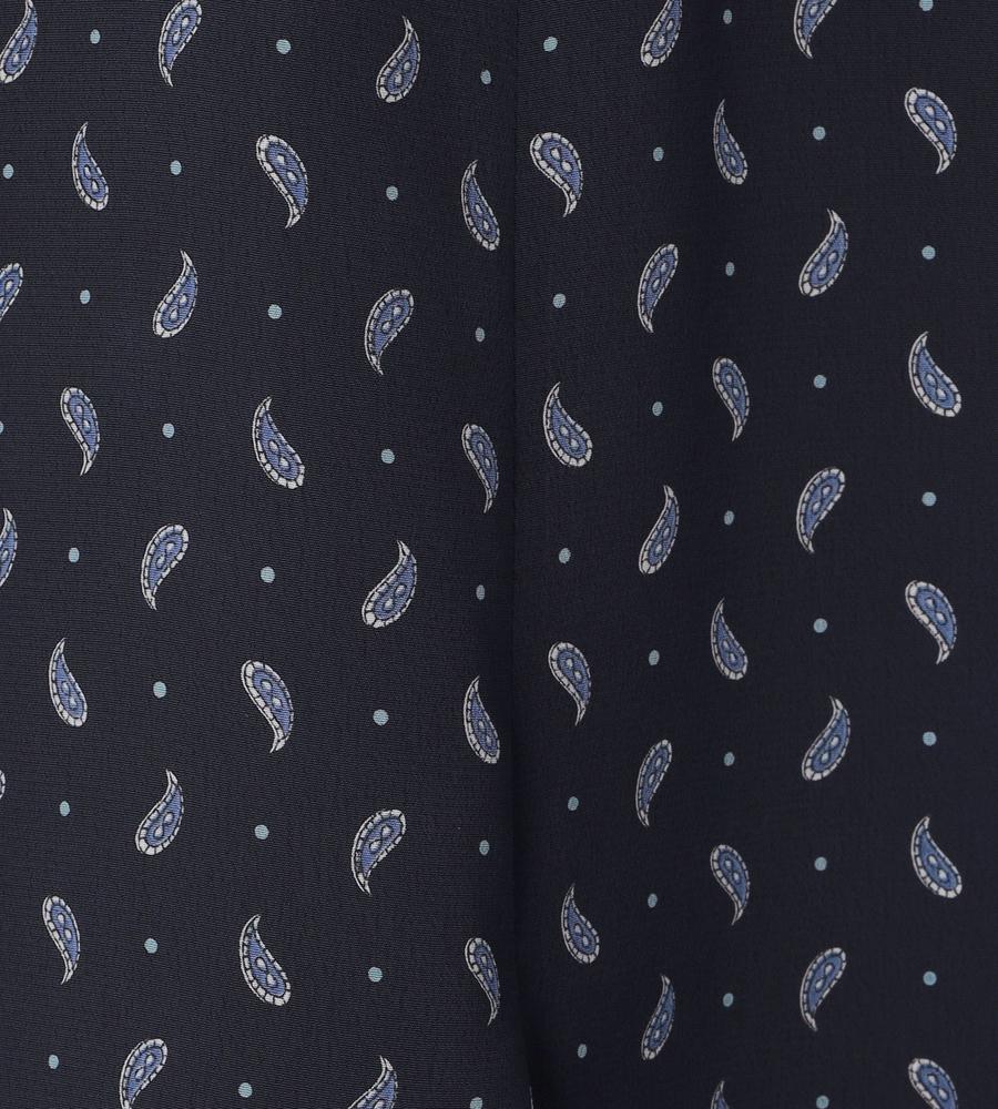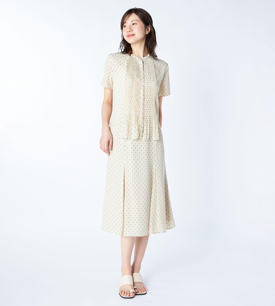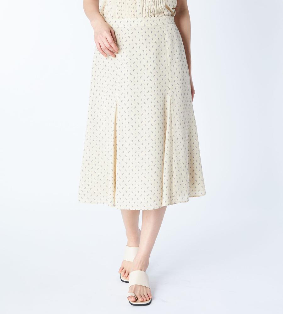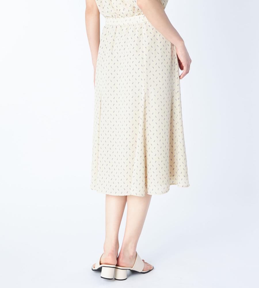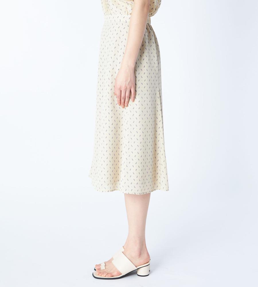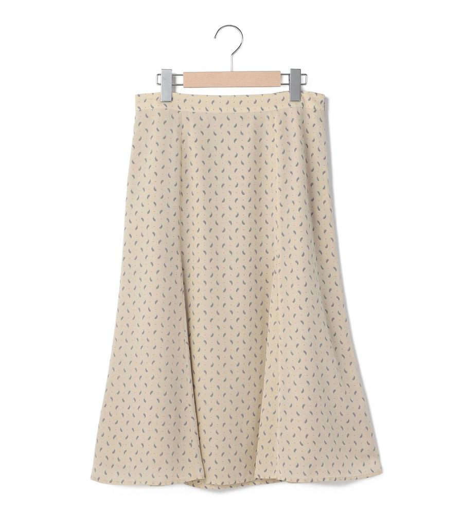 ペイズリー模様の総柄プリントで仕上げたミディ丈スカートです。小さめのドット柄をMIXすることで、毎日のコーデに着まわししやすいカジュアル感をプラスしました。女性らしい着こなしがかなう裾広がりのマーメードシルエット、同素材のブラウスとセットアップでそろえたスタイリングもおすすめです。