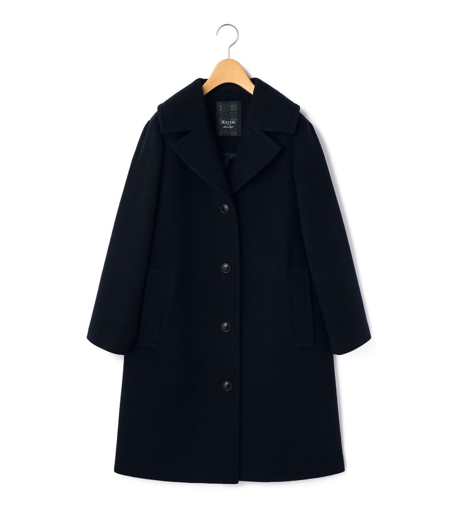 シングル4つボタンのコート。ペコラムという国産のこだわり素材で仕立て、フェルトのようにやわらかな肌触りのメルトン仕上げをした保温性にすぐれた生地で、秋冬シーズンにぴったり。大きめの襟が印象的なシンプルなデザインの一枚。お出かけにはもちろんオフィスシーンにもマッチするエレガントなアイテムです。