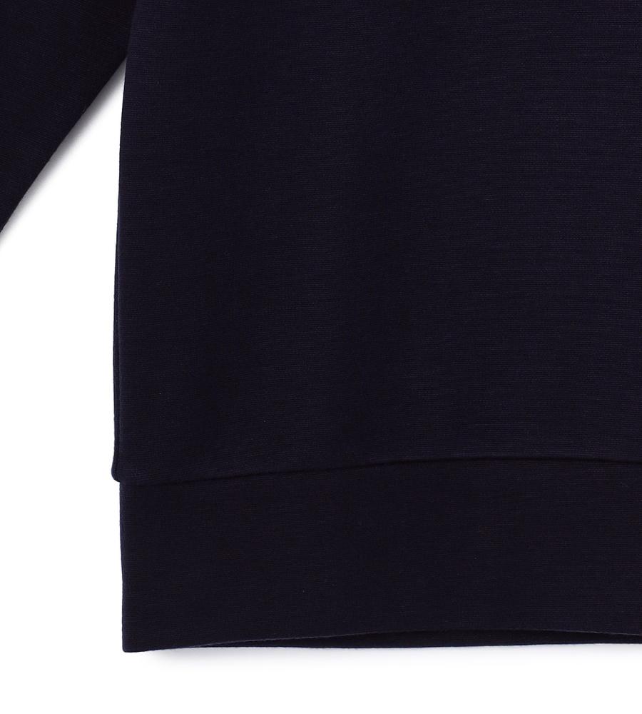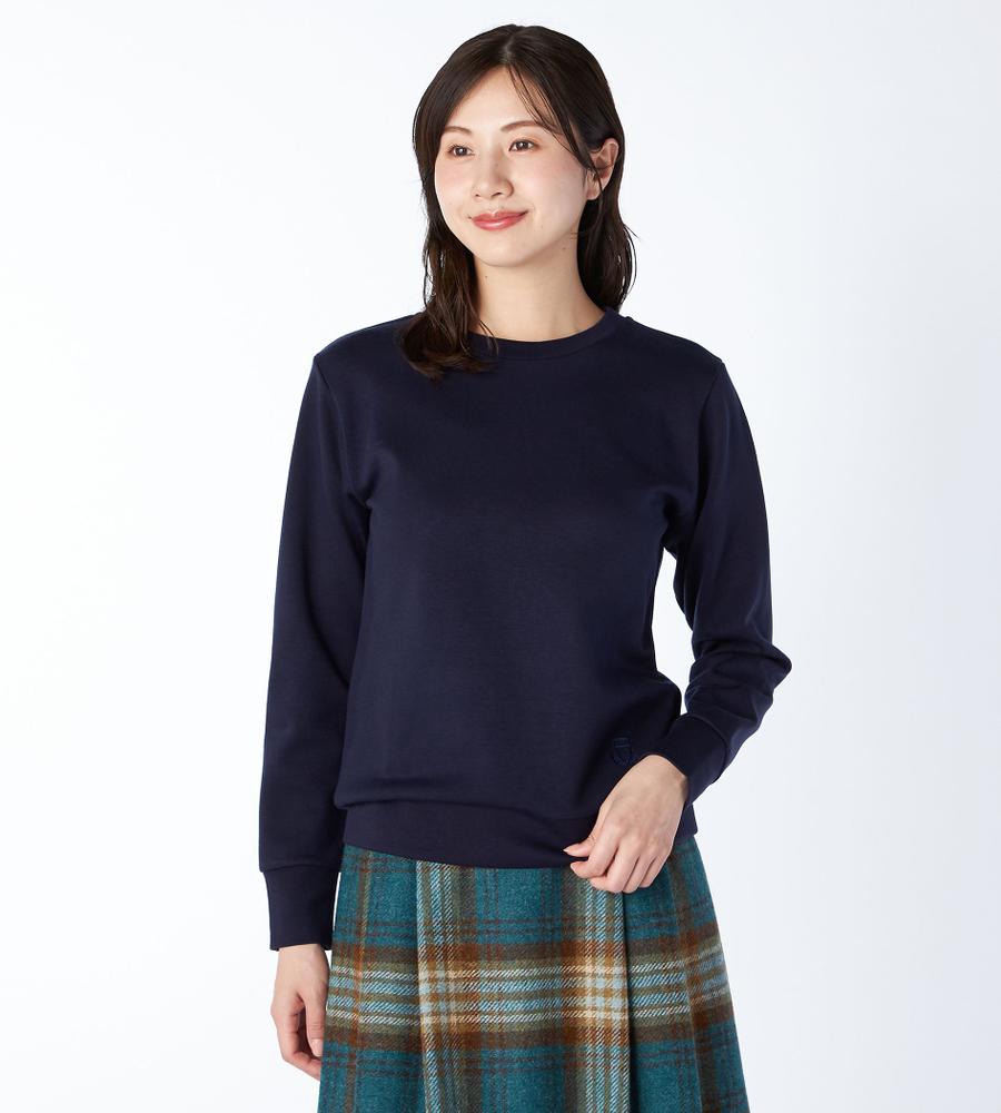 動きやすいのにシワになりにくい便利なポンチ生地で仕立てたオーバーカットソー。ハリ感がありカジュアルアイテムながらもエレガントなムード。裾にはブランドオリジナルのエンブレム刺繍がおしゃれなデザイン。袖先と裾のリブがシルエットのメリハリあるアクセント。シンプルなデザインでボトムを選ばず着こなせる一枚です。